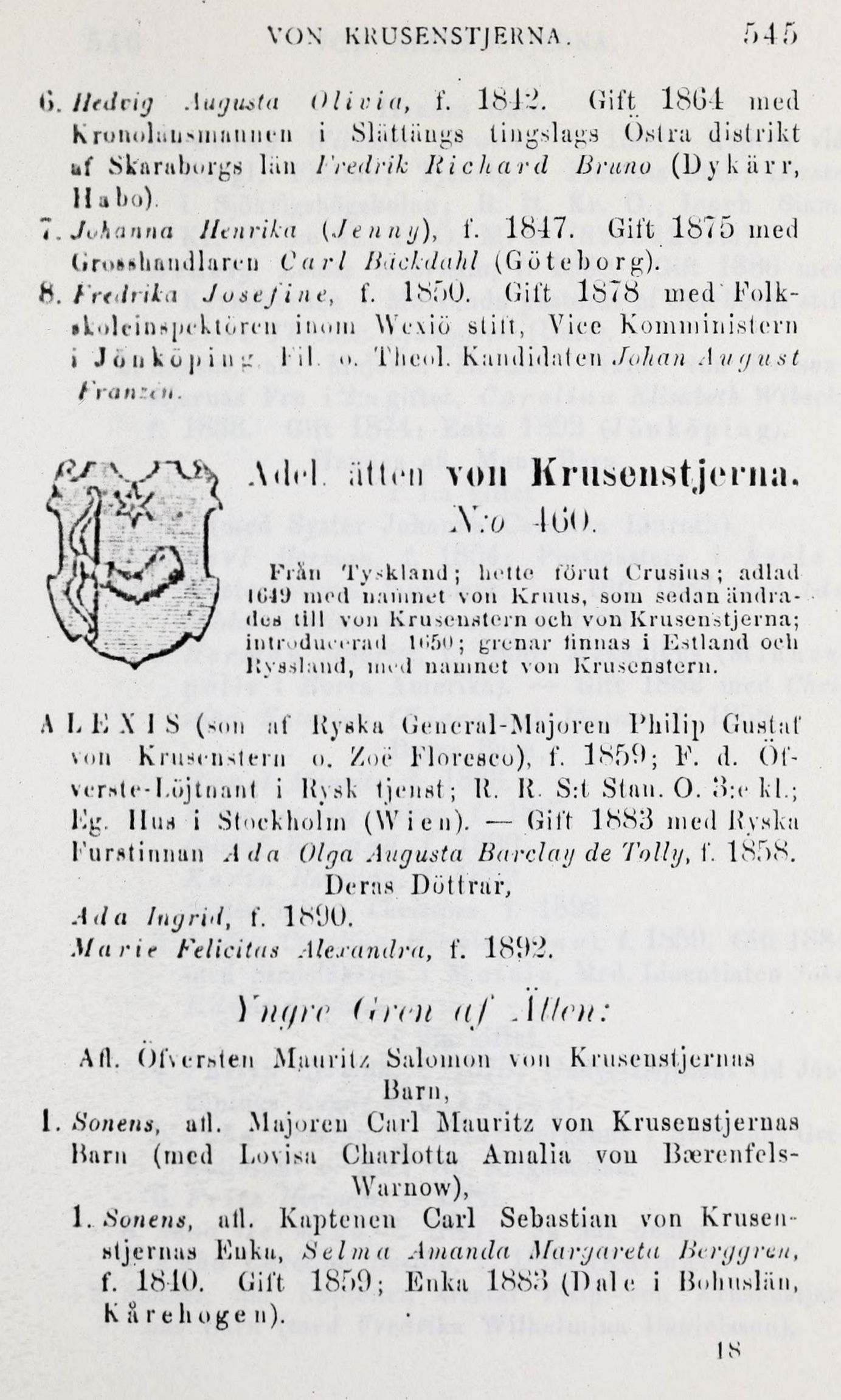 1. Sonens, all. Majoren Carl Mauritz von Kruseustjcrnas