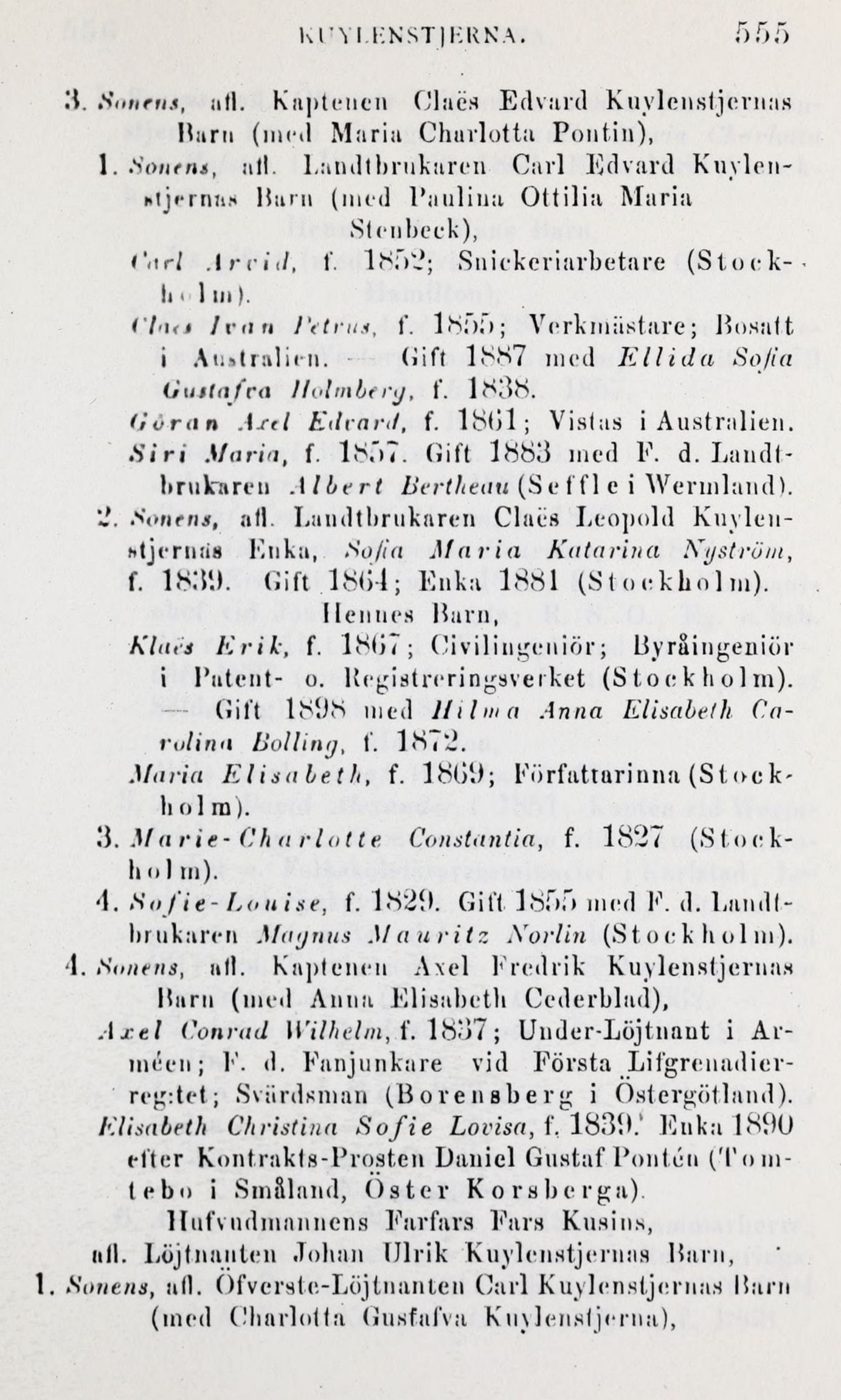 I. Sunens, all. Kaptenen Axel Fredrik Kuvlenstjernas