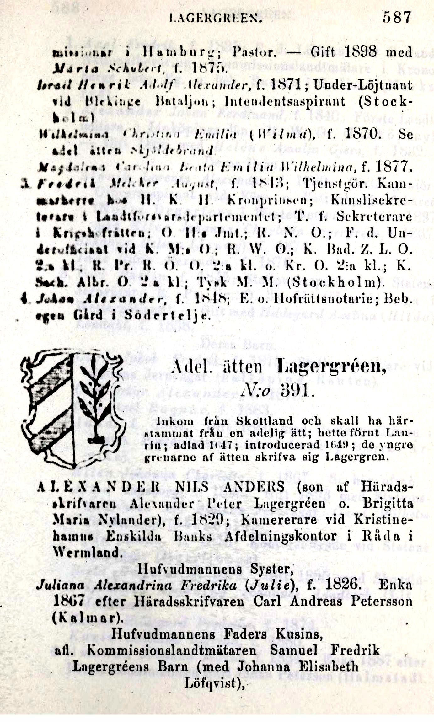jfr» tiurnc af ätten skrifva sig Lagergren.