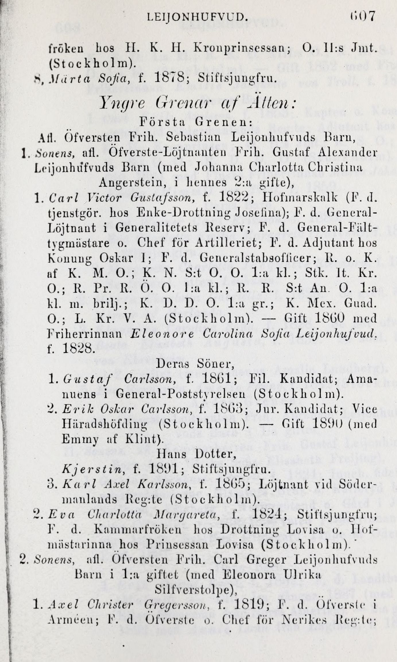 2. Sonens, afl. Öfversten Frih. Carl Greger Lejonhufvuds