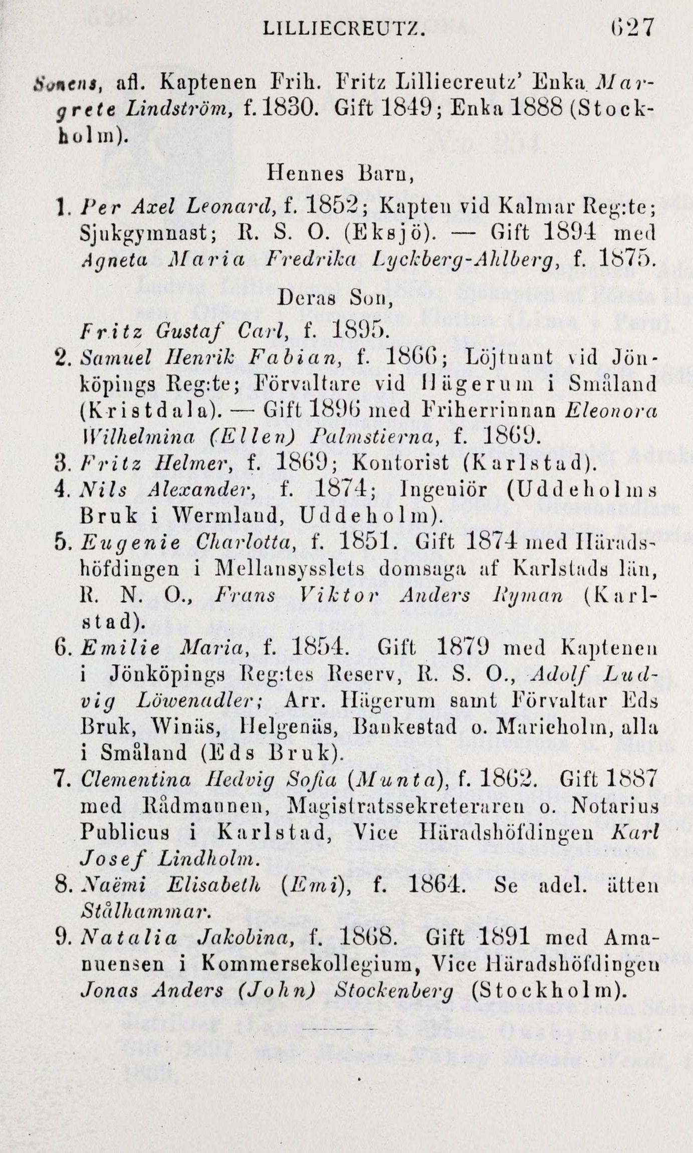 1. Ver Axel Leonard, f. 1852; Kapten vid Kalmar Reg:te;