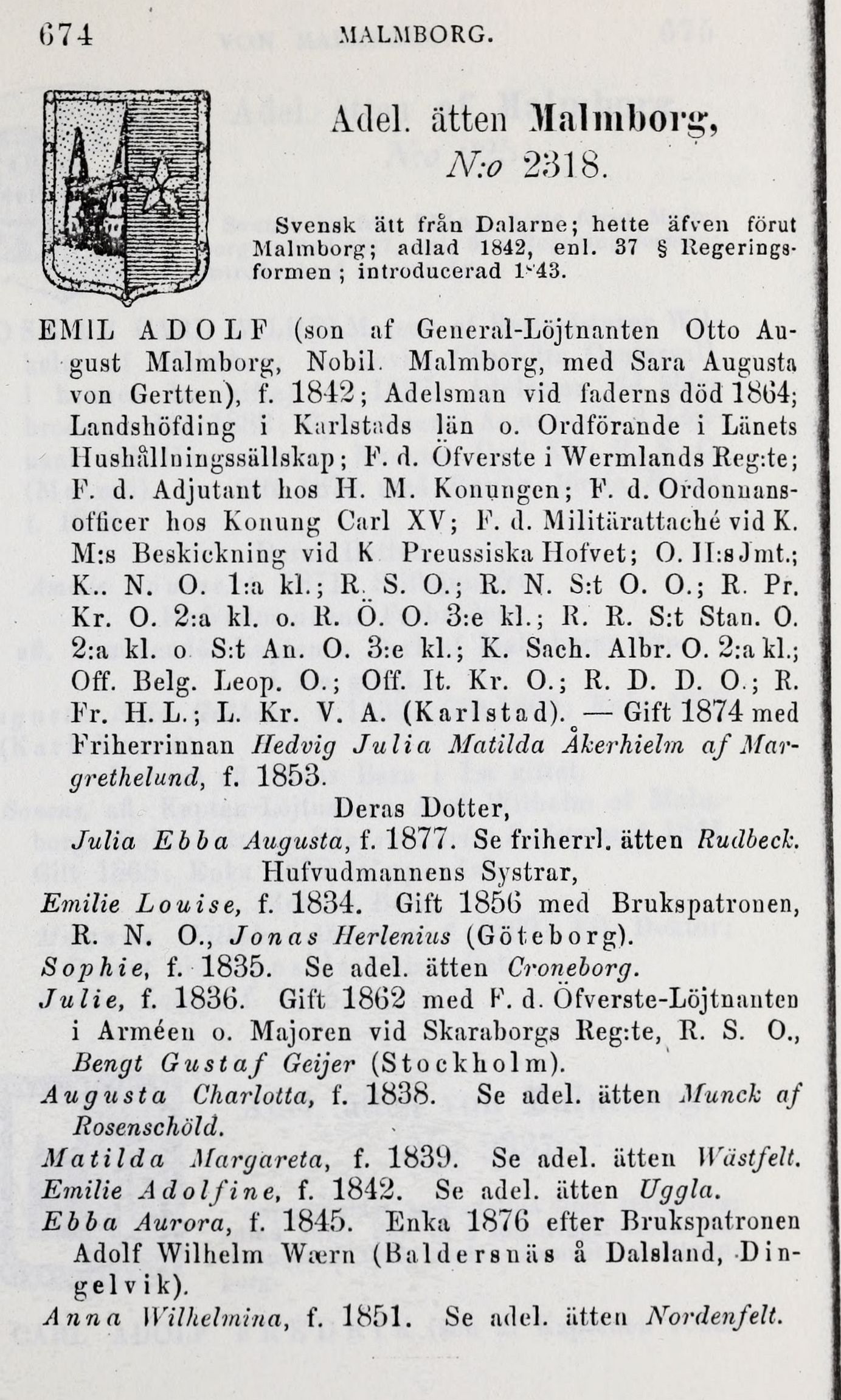 August Malmborg, Nobil. Malmborg, med Sara Augusta