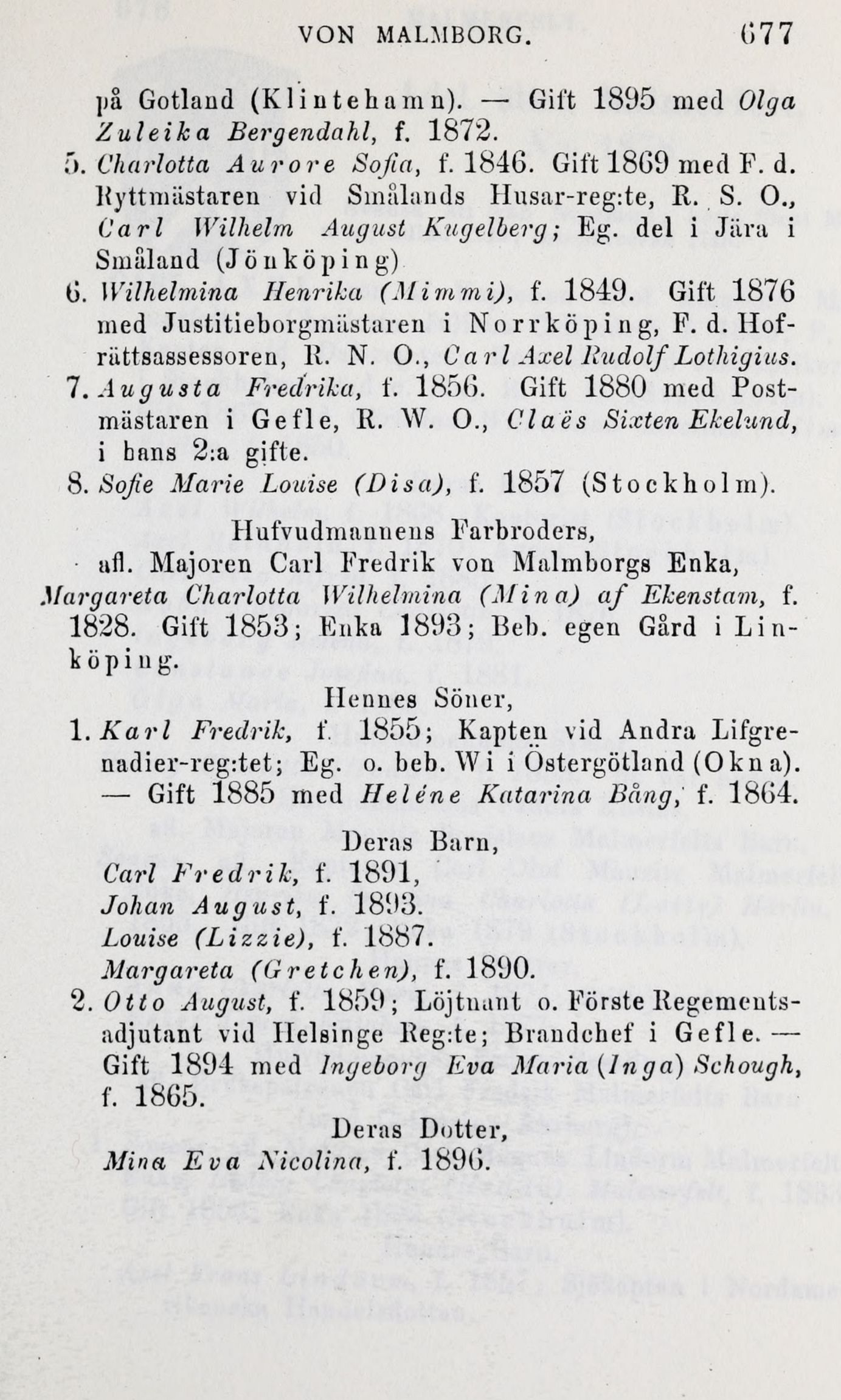 2. Otto August, f. 1859; Löjtnant o. Förste