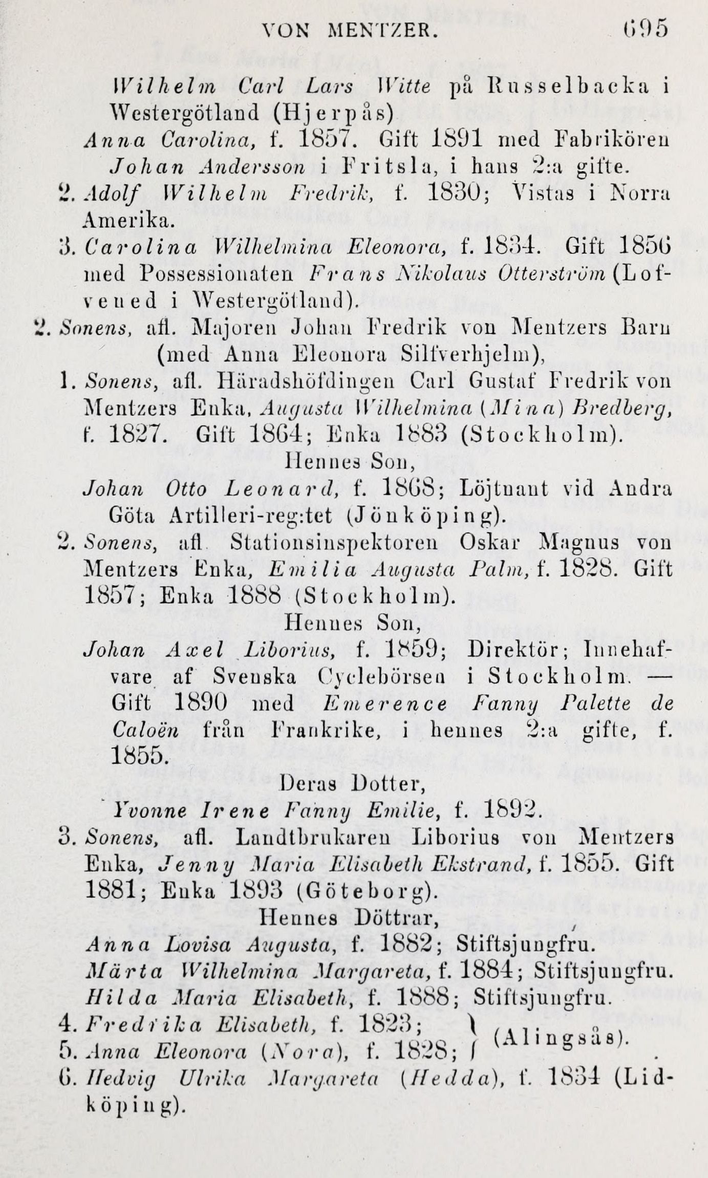Sonens, afl. Majoren Johan Fredrik von Mentzers Barn