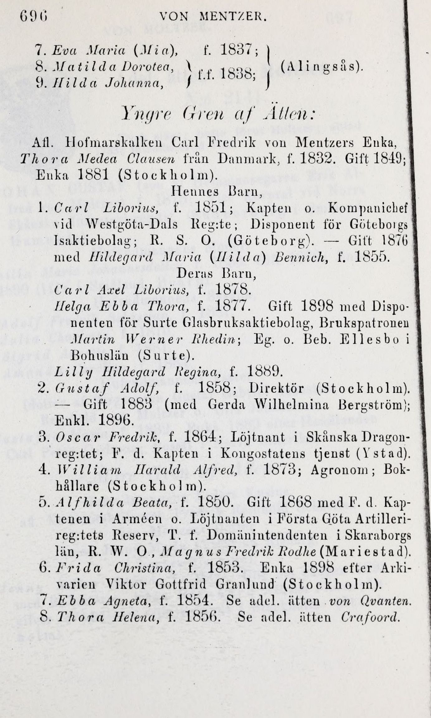 8. Thora Helena, f. 1850. Se adel. ätten Crafoord.