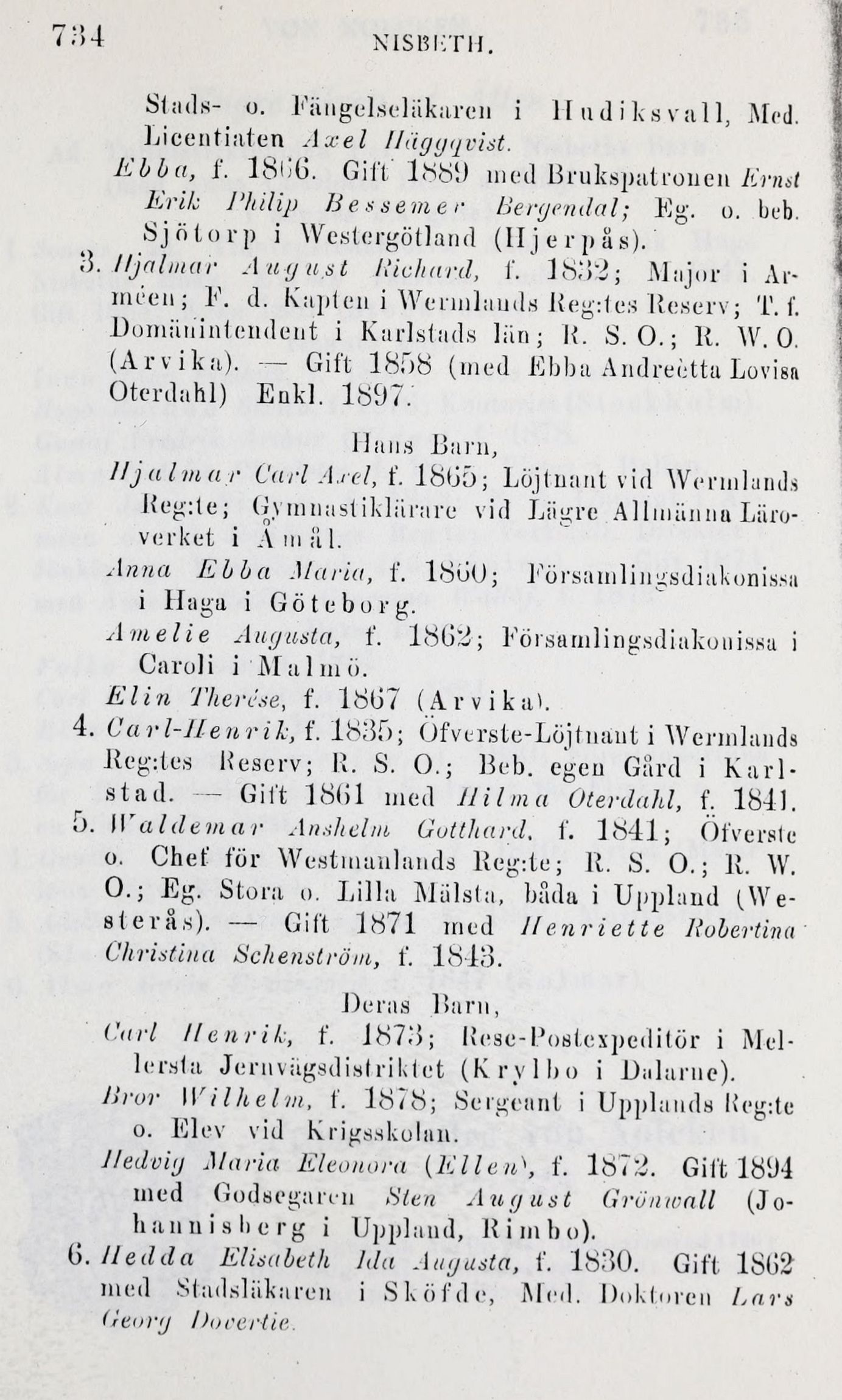 4. Carl-lleurik, f. 1835; Öfverste-Löjtnant i Wermlands