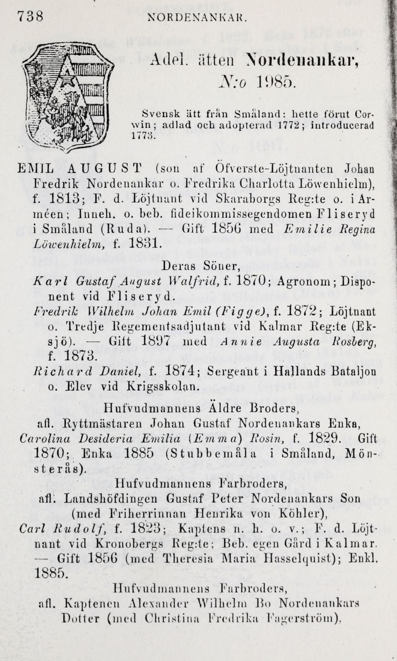 i Småland (Ruda). •— Gift 1850 med Emilie Regina