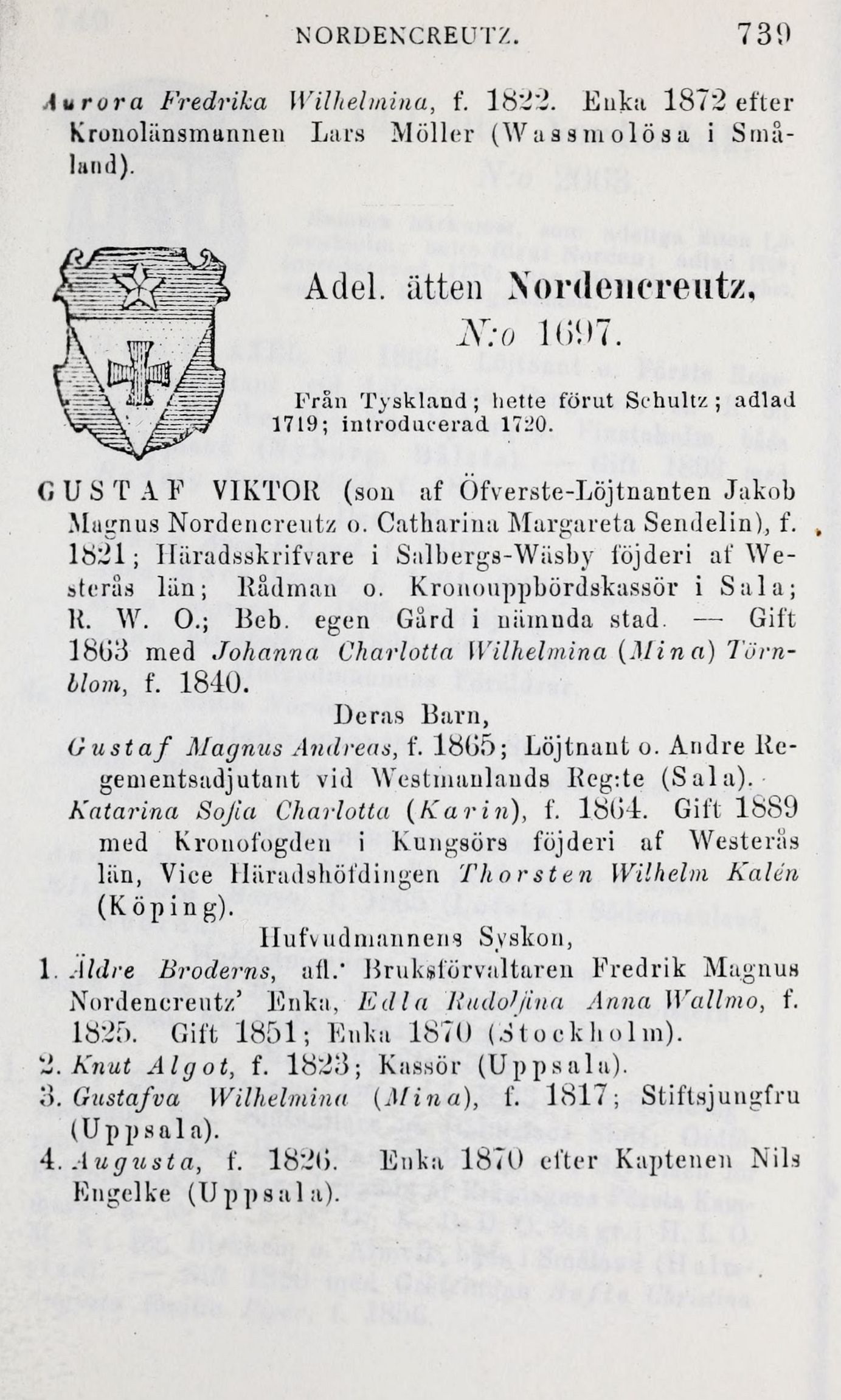 1825. Gift 1851; Enka 1870 (Stockholm).