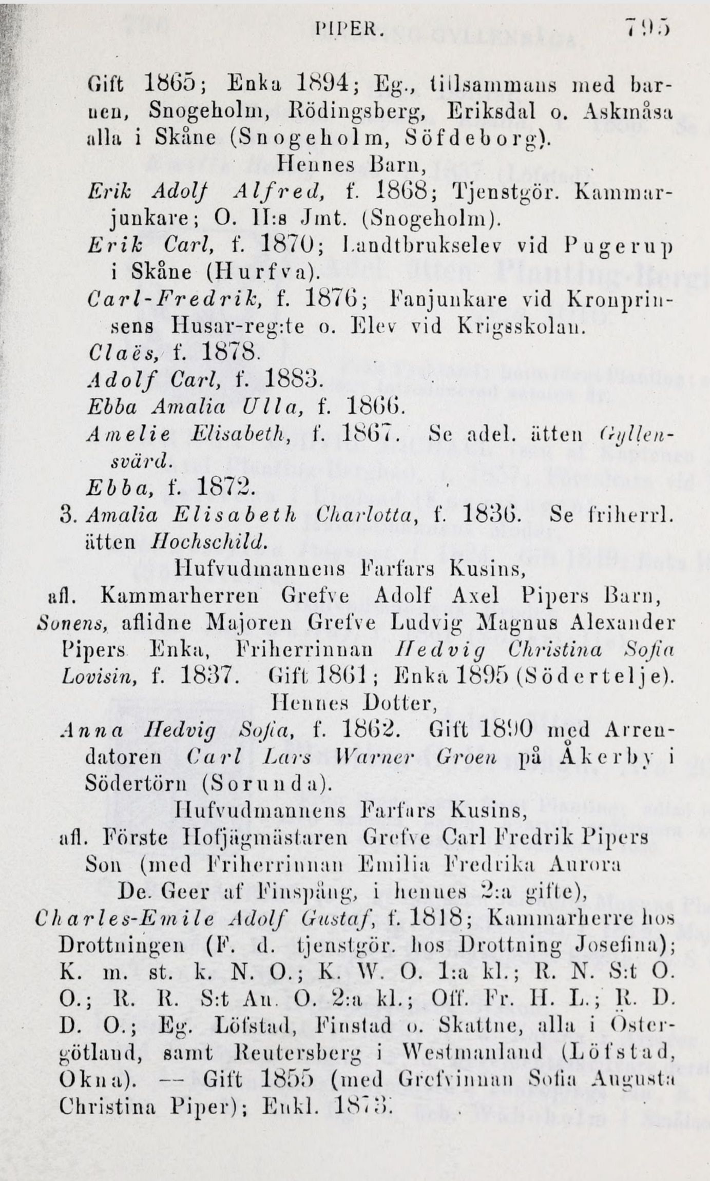 Ökna). — Gift 1855 (med Grefvinnan Solia Augusta