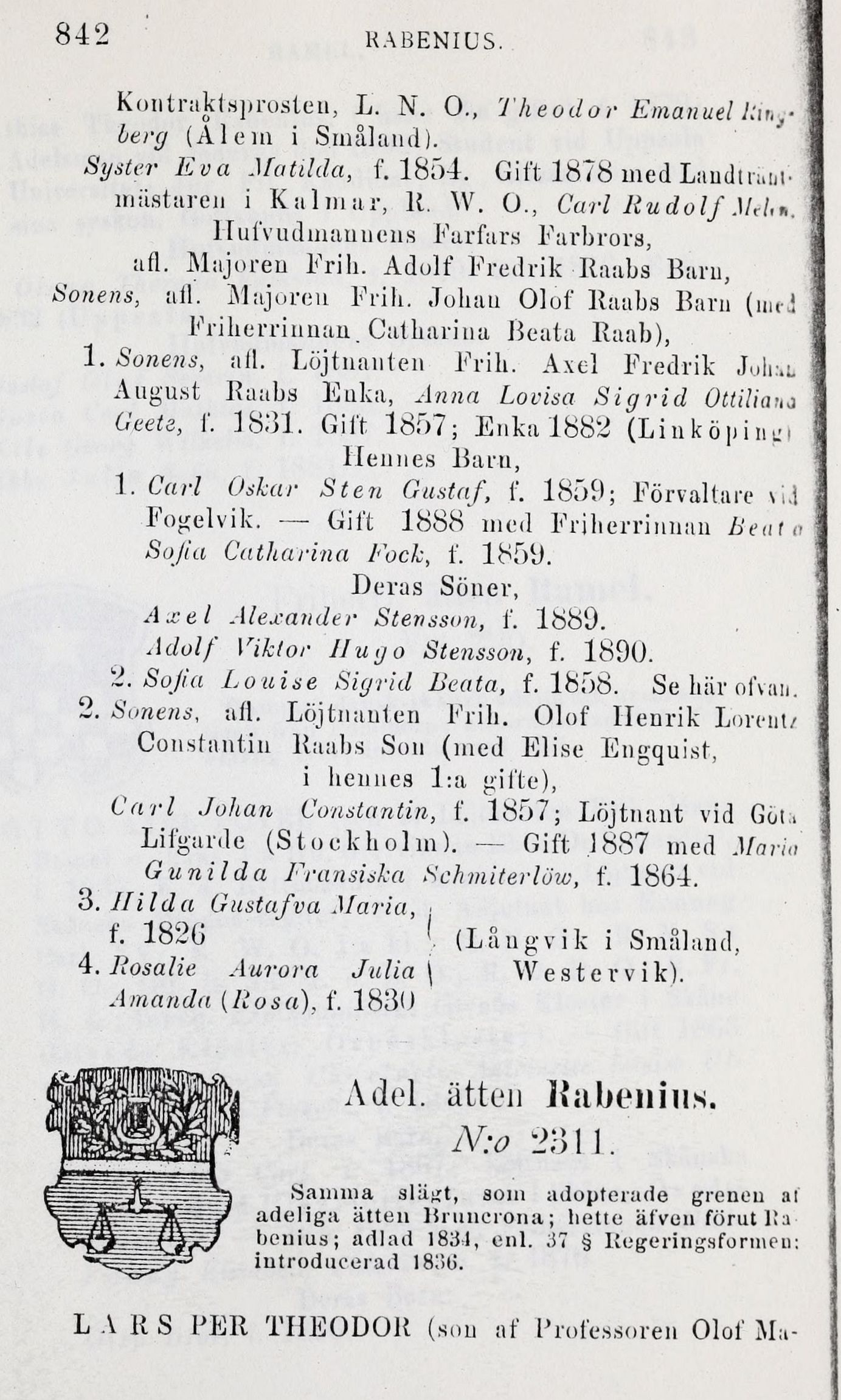 afl. Majoren Frih. Adolf Fredrik Raabs Barn,