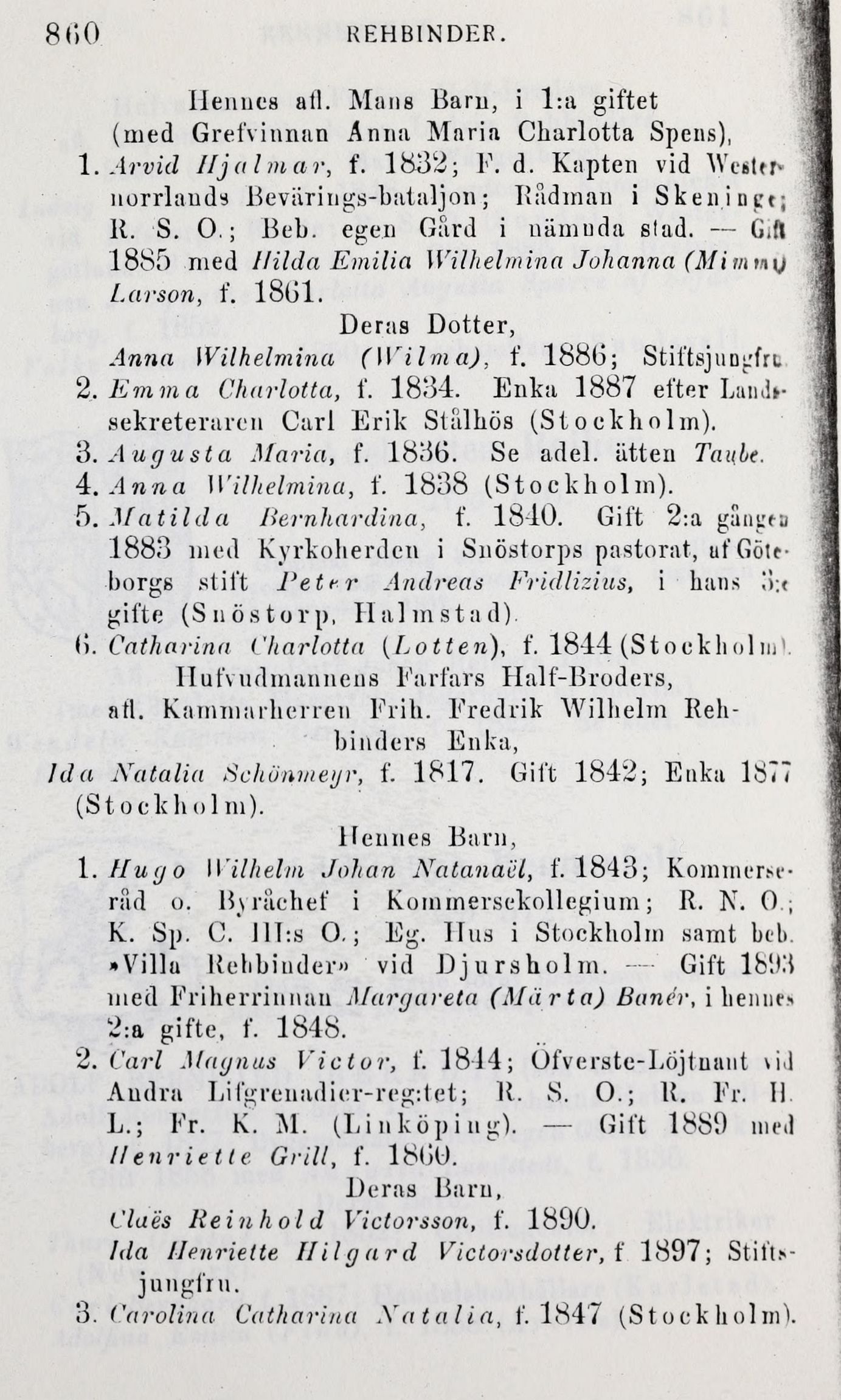 1. Arvid Hjalmar, f. 1832; F. d. Kapten vid Wetter*
