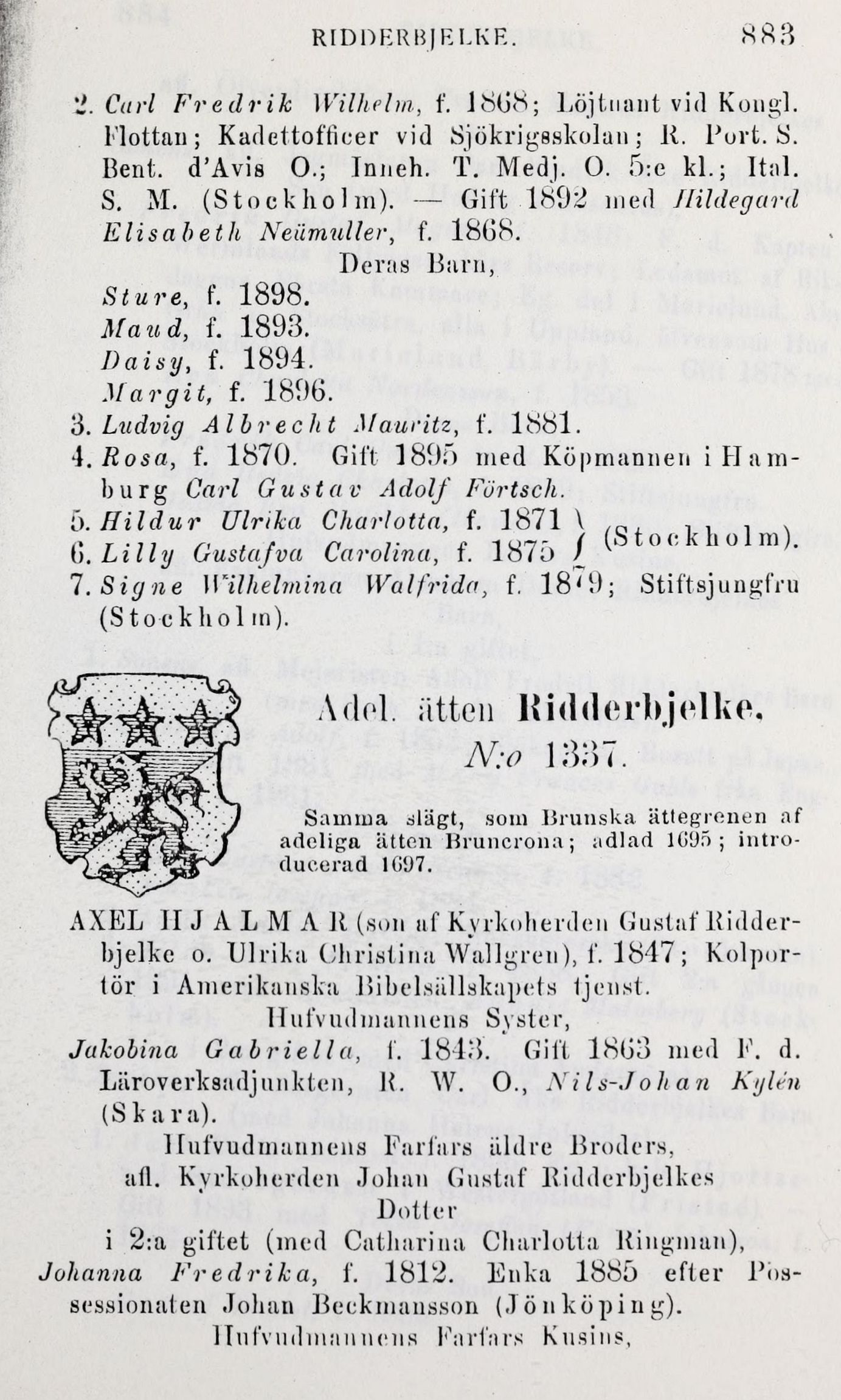Ridder-bjelke o. Ulrika Christina Wallgren), f. 1847;