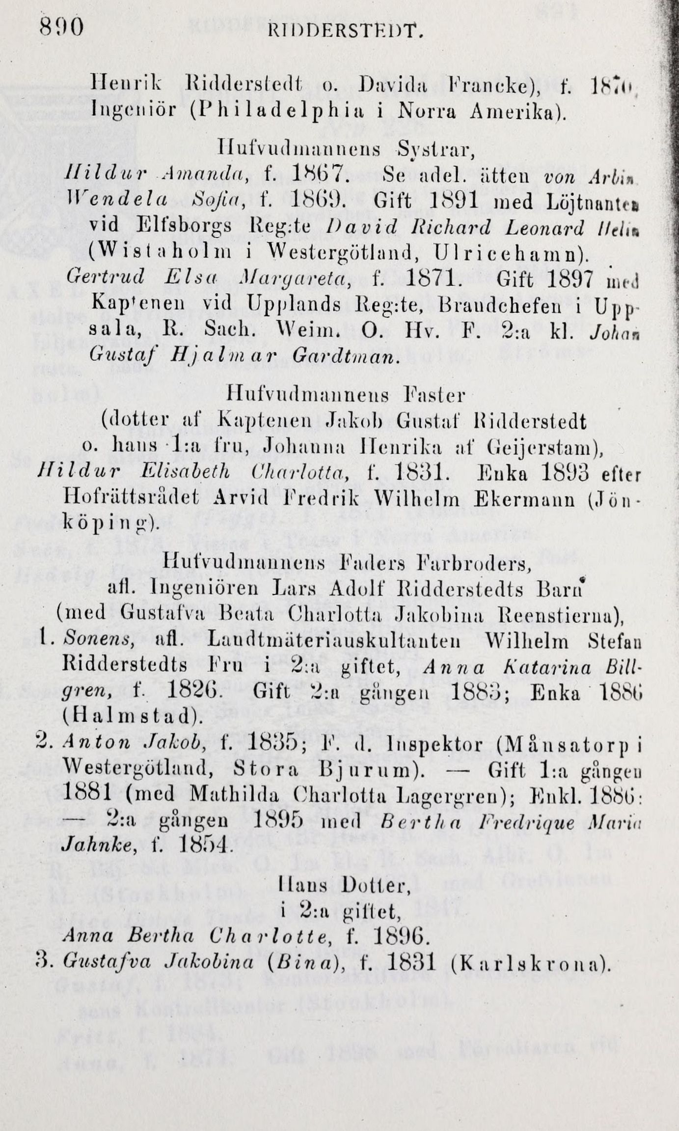 afl. Ingeniören Lars Adolf Ridderstedts Barn