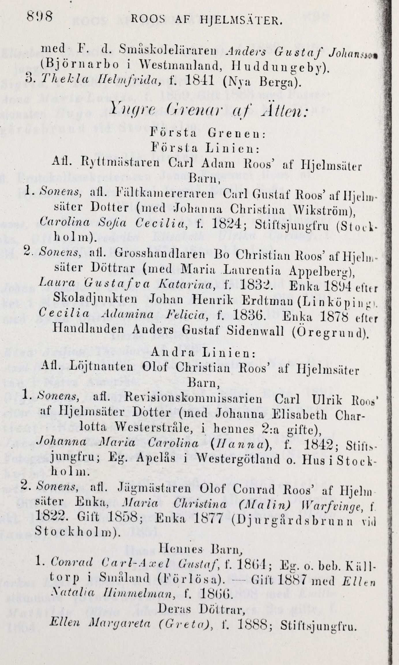2. Sonens, afl. Jägmästaren Olof Conrad Roos’ af Hjelm