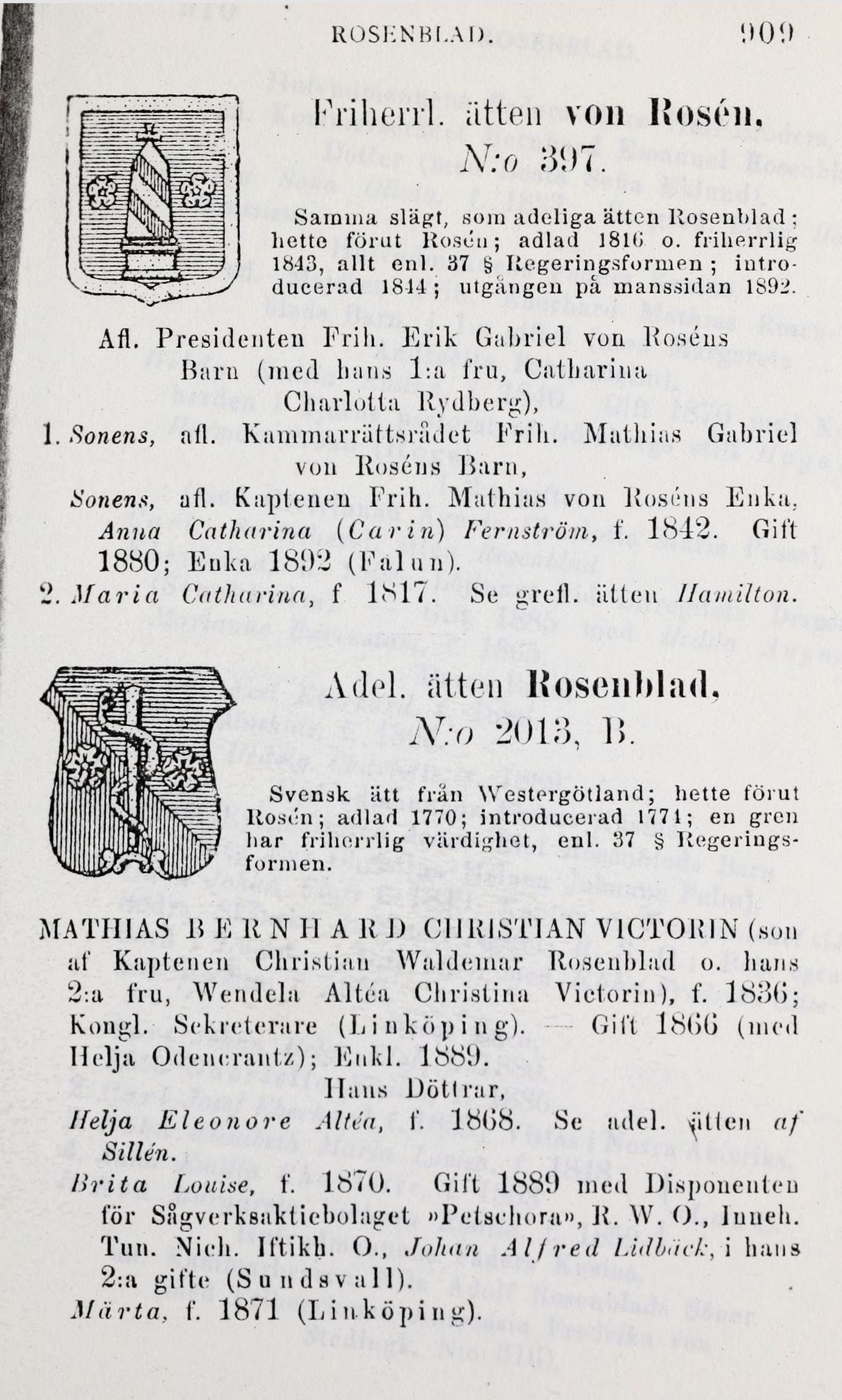 Adel. ätten Kosenblad.