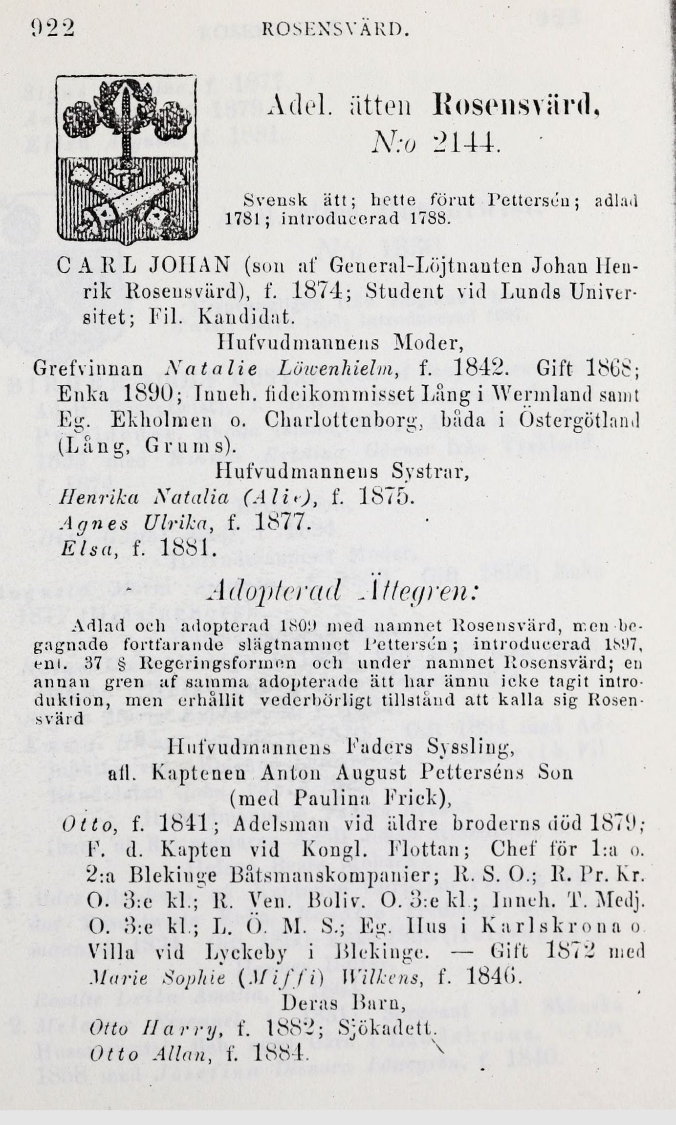 Adel. ätten lioscnsvänl,