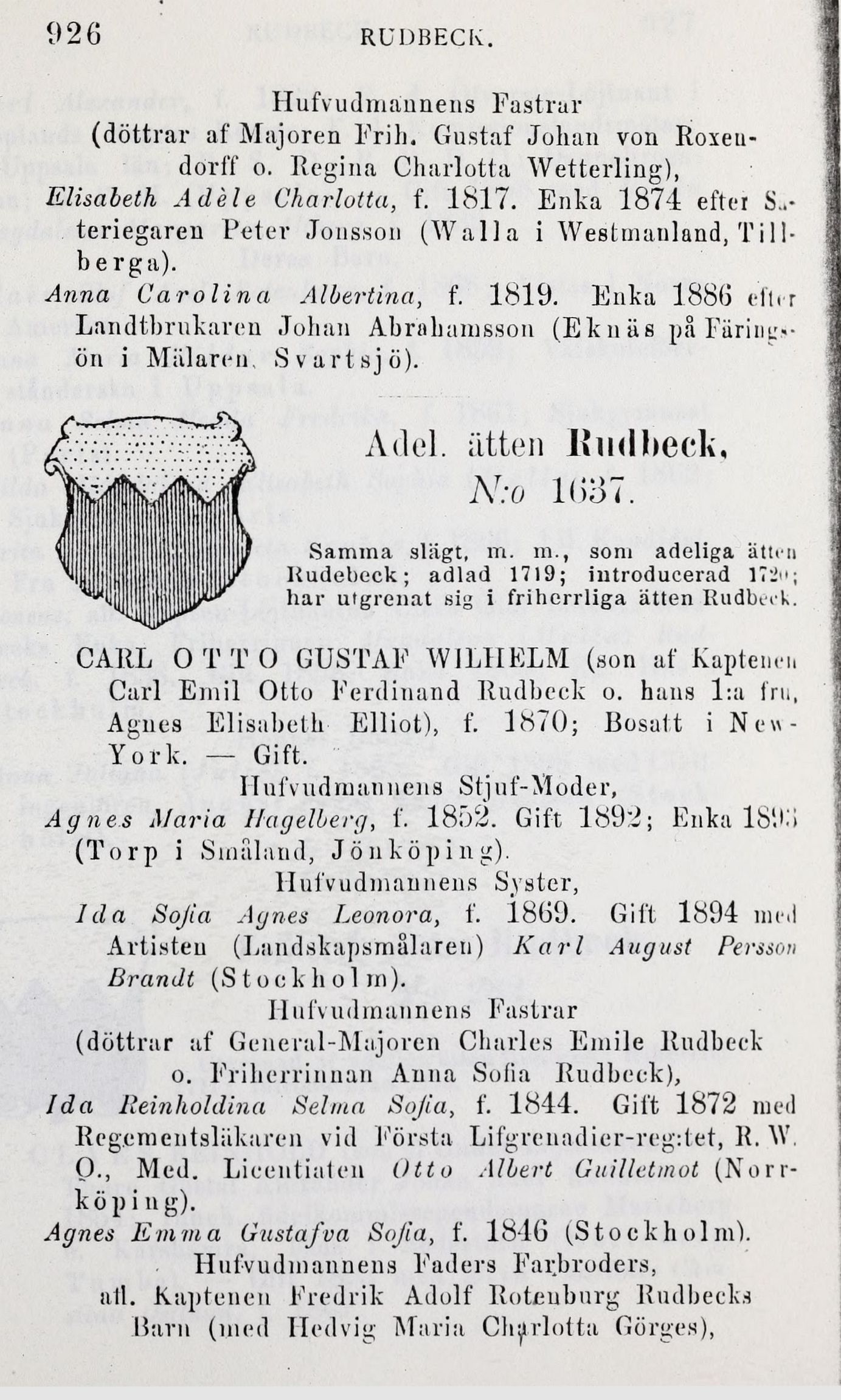 har utgrenat sig i frihcrrliga ätten Rudbeck.