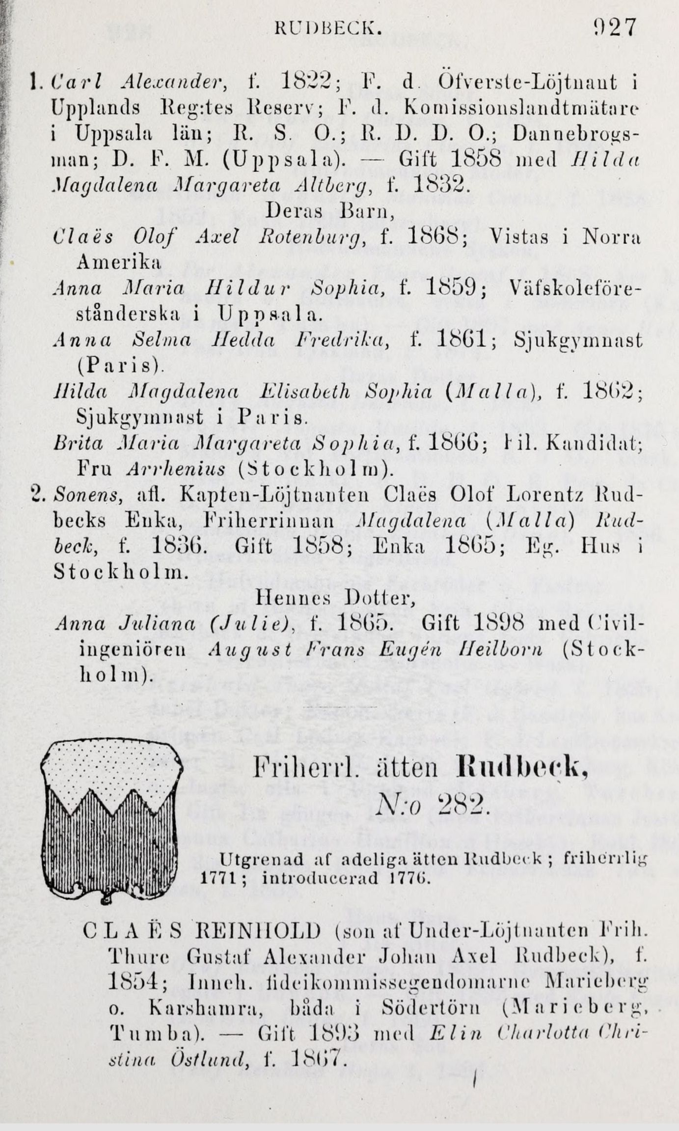 Rudbeck, f. 1836. Gift 1858; Enka 1865; Eg. Ilus i