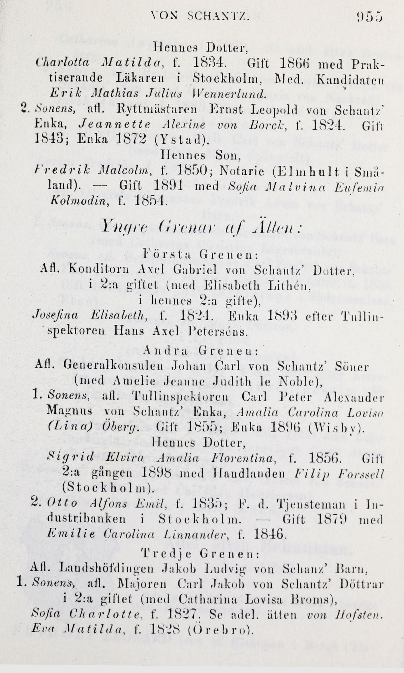 1. Sonens-, afl. Majoren Carl Jakob von Schantz’ Döttrar