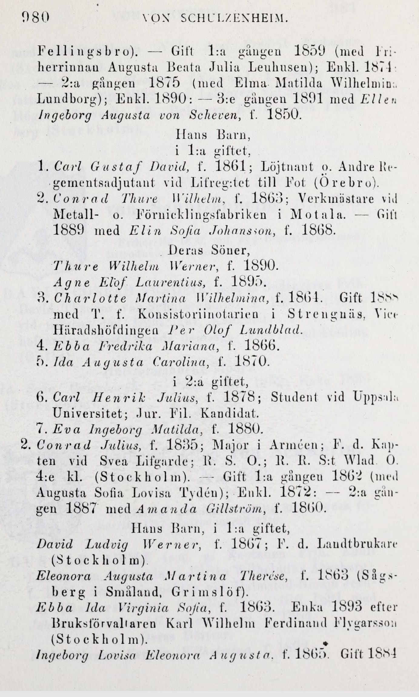 2. Conrad Thure W ilhelm, f. 1863; Verkmästare vid