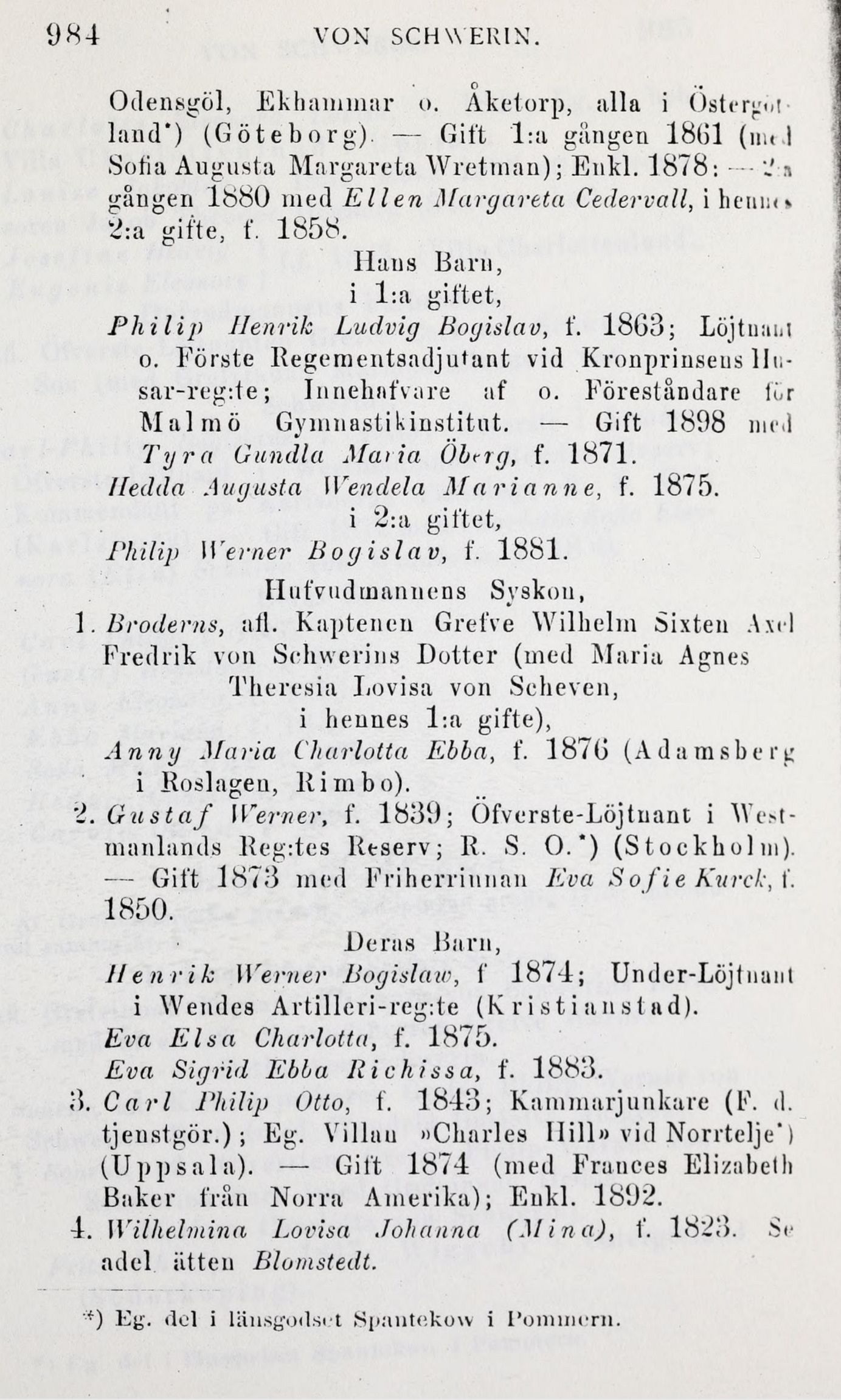 2. Gustaf Werner, f. 1839; Öfverste-Löjtnant i