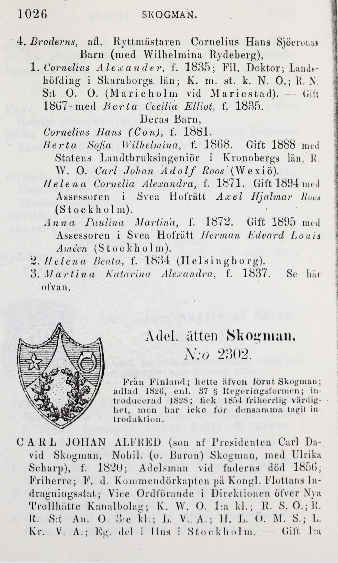 1. Cornelius Alexander, f. 1835; Fil. Doktor;