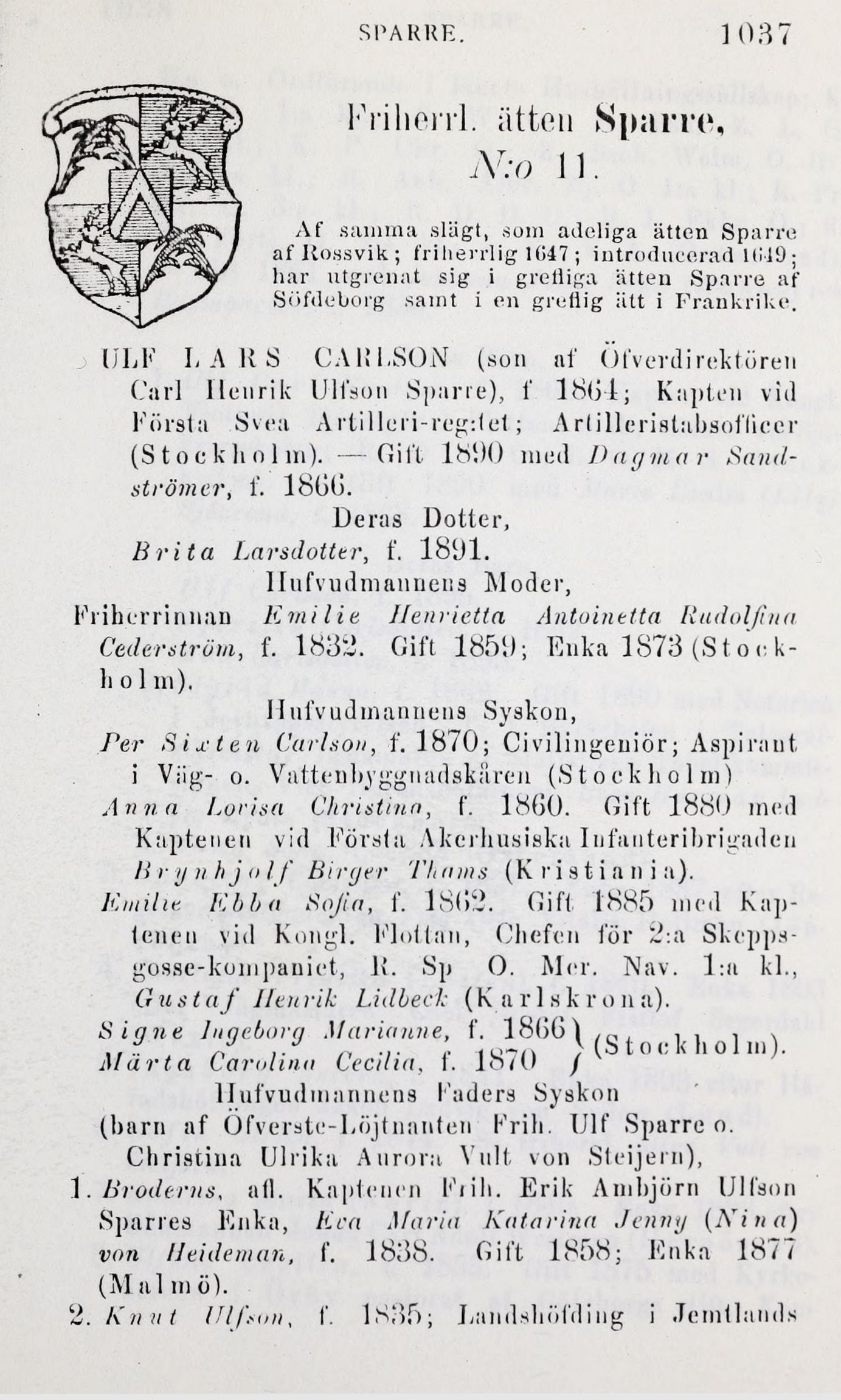 2. Knut Ulfsuii, f. 1835; Landshöfding i .Temtlands