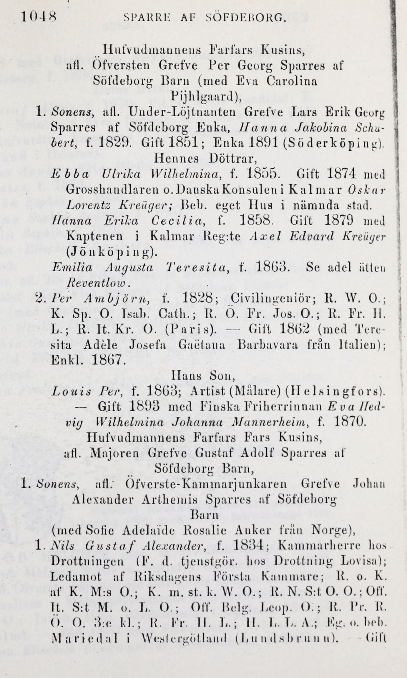 1. Nils Gustaf Alexander, f. 1834; Kammarherre hos