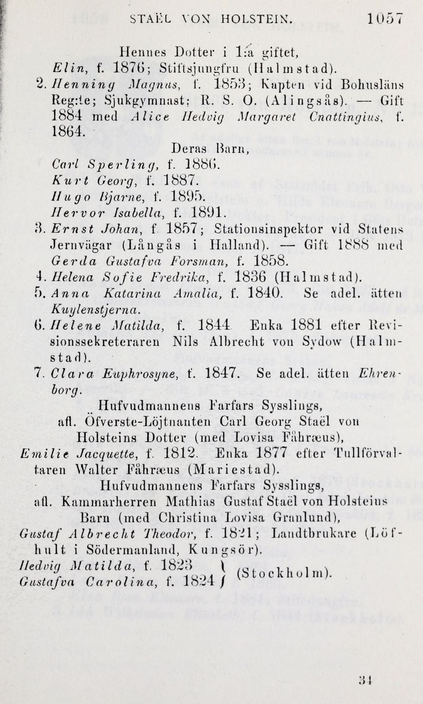 3. Ernst Johan, f 1857; Stationsinspektor vid Statens
