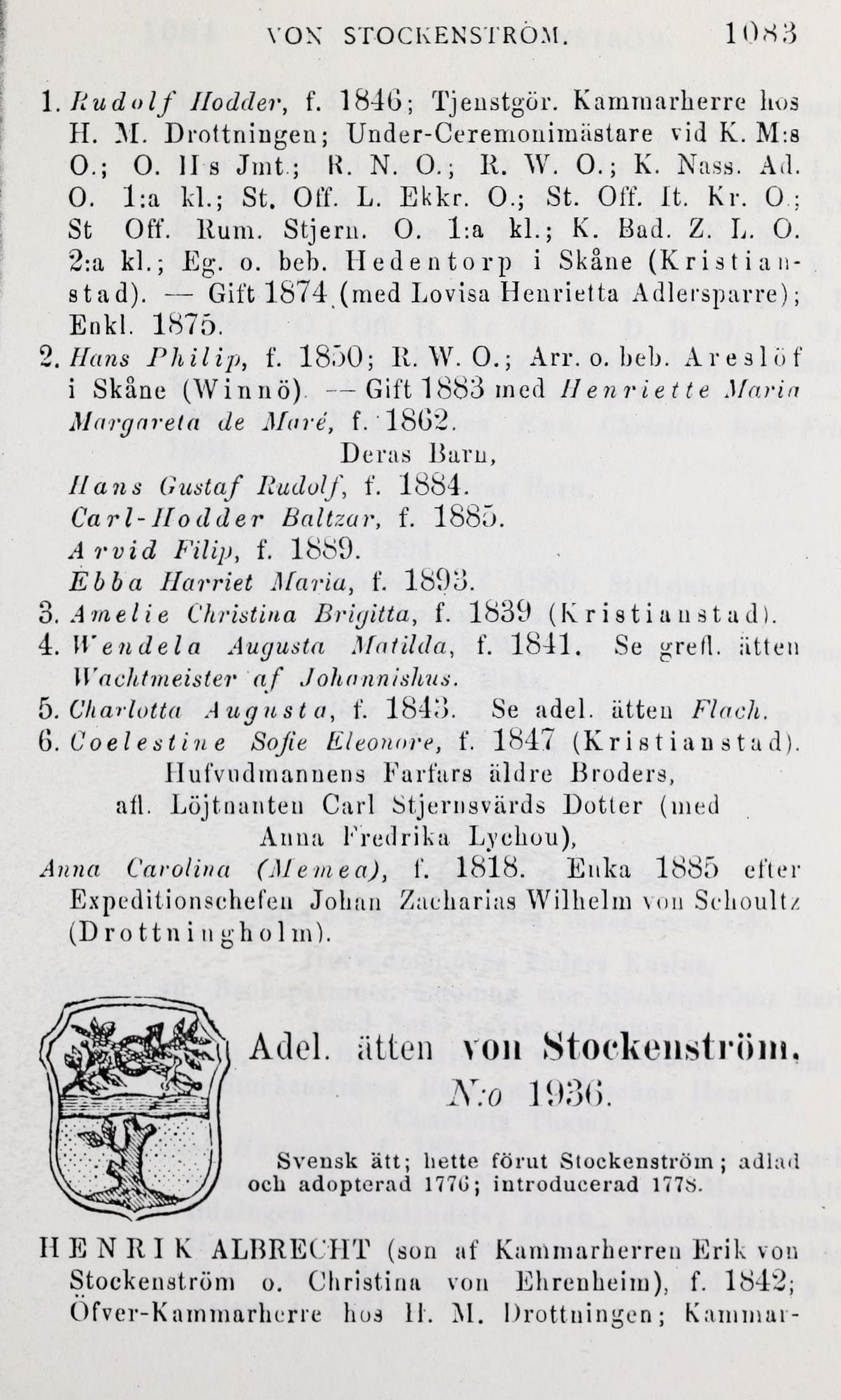 1. Rudolf Ilodder, f. 1846; Tjenstgör. Kammarherre hos
