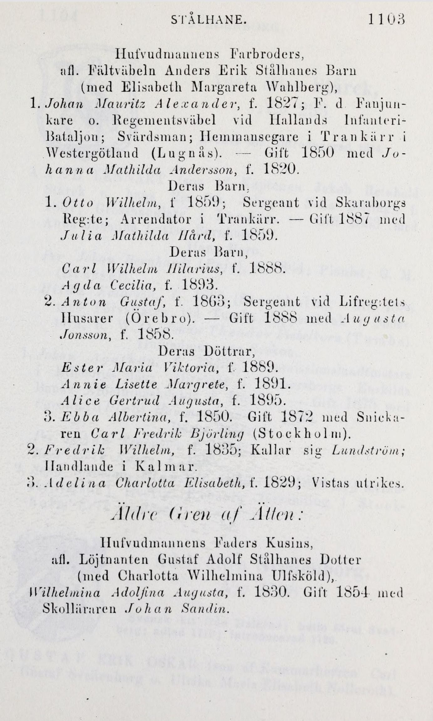 2. Anton Gustaf, f. 18G3; Sergeant vid Lifreg:tels