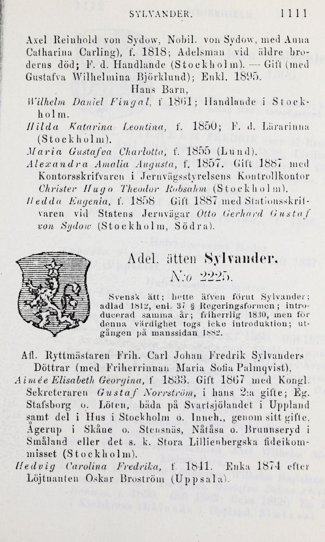 .Svensk ätt; hette äfven förut Sylvander;