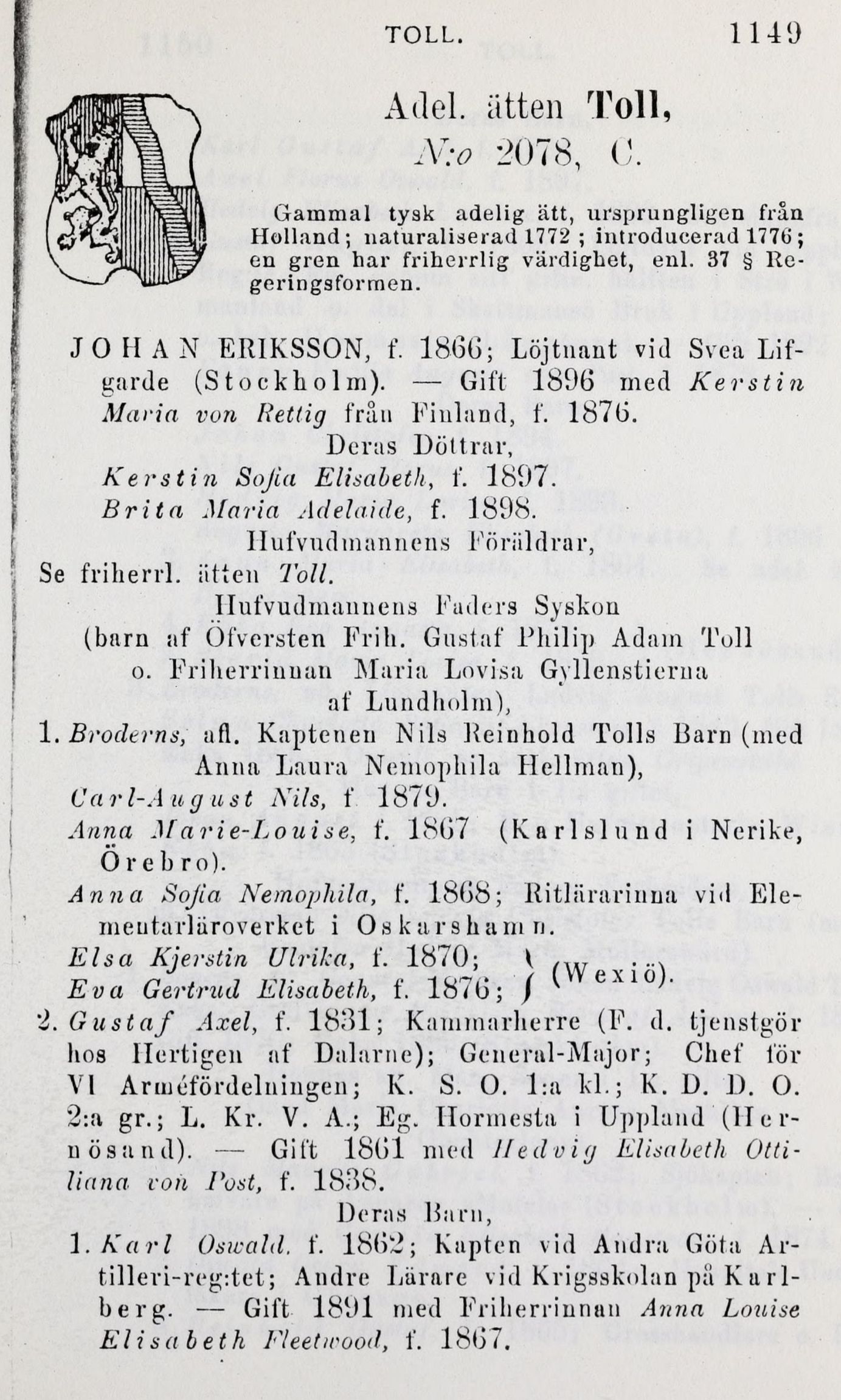 (barn af Öfversten Frih. Gustaf Philip Adam Toll