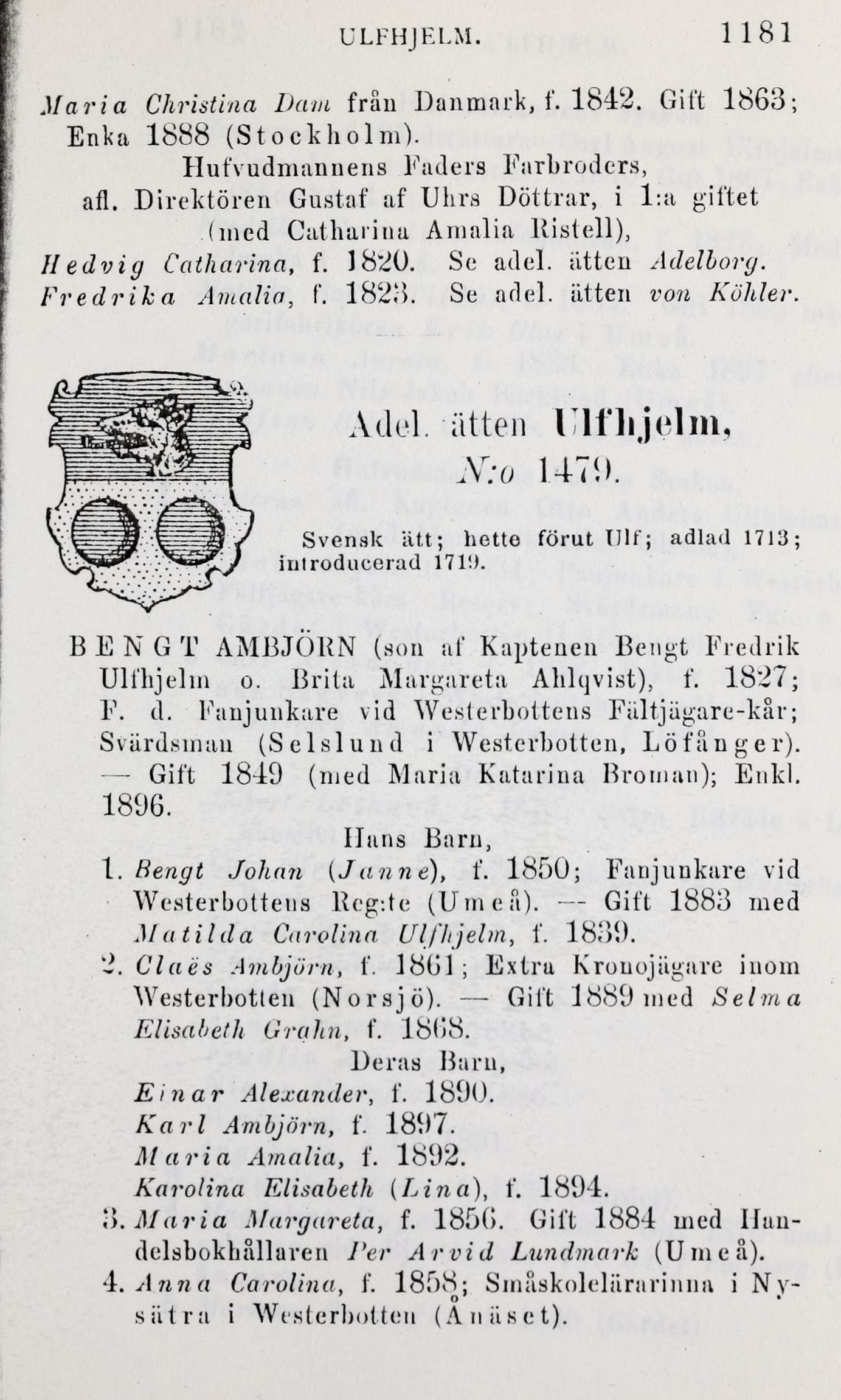 Ullhjelm o. Brita Margareta Ahlqvist), f. 1827;