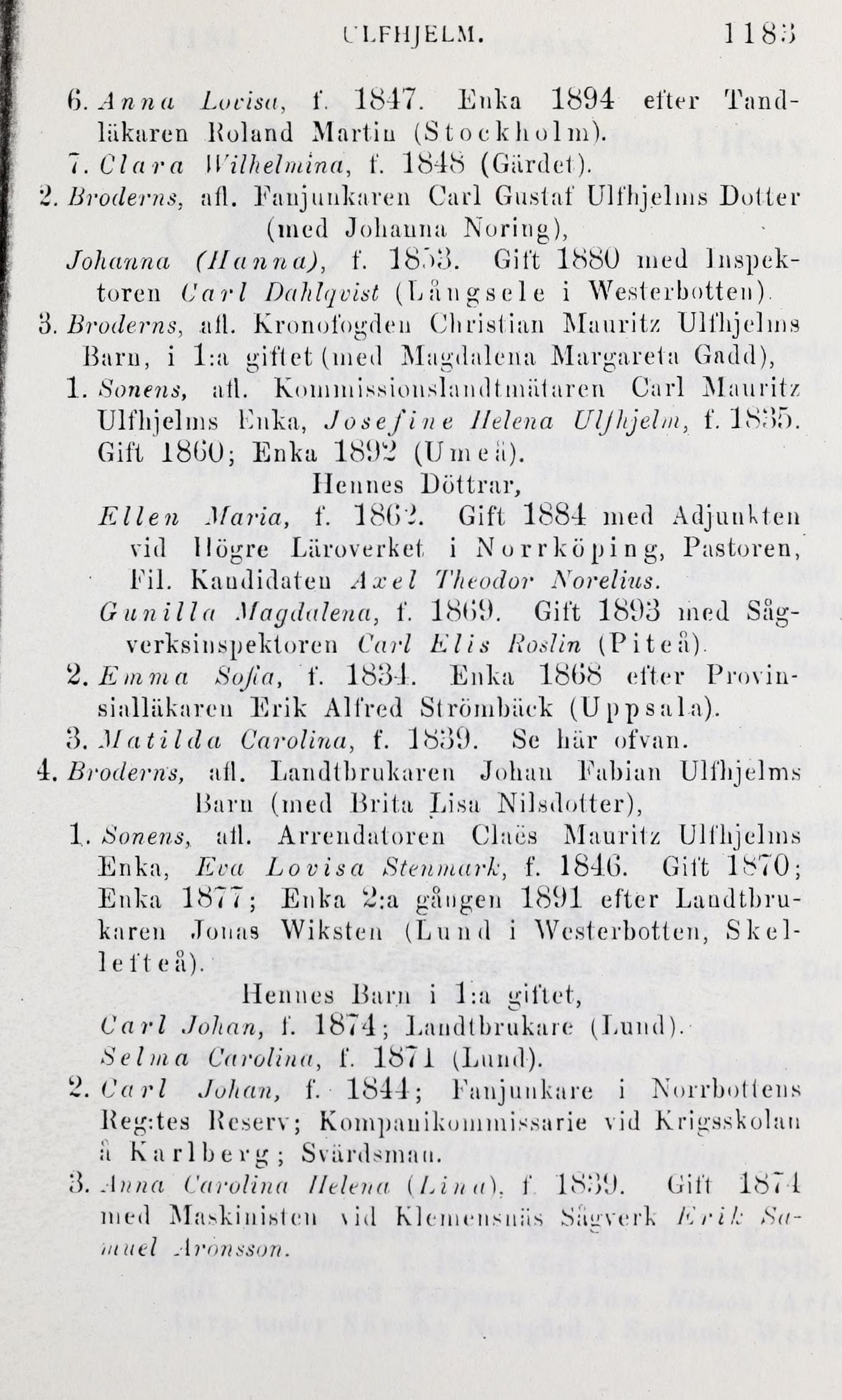 2. Broderns, all. Fanjunkaren Carl Gustaf Ulfhjelms Dotter