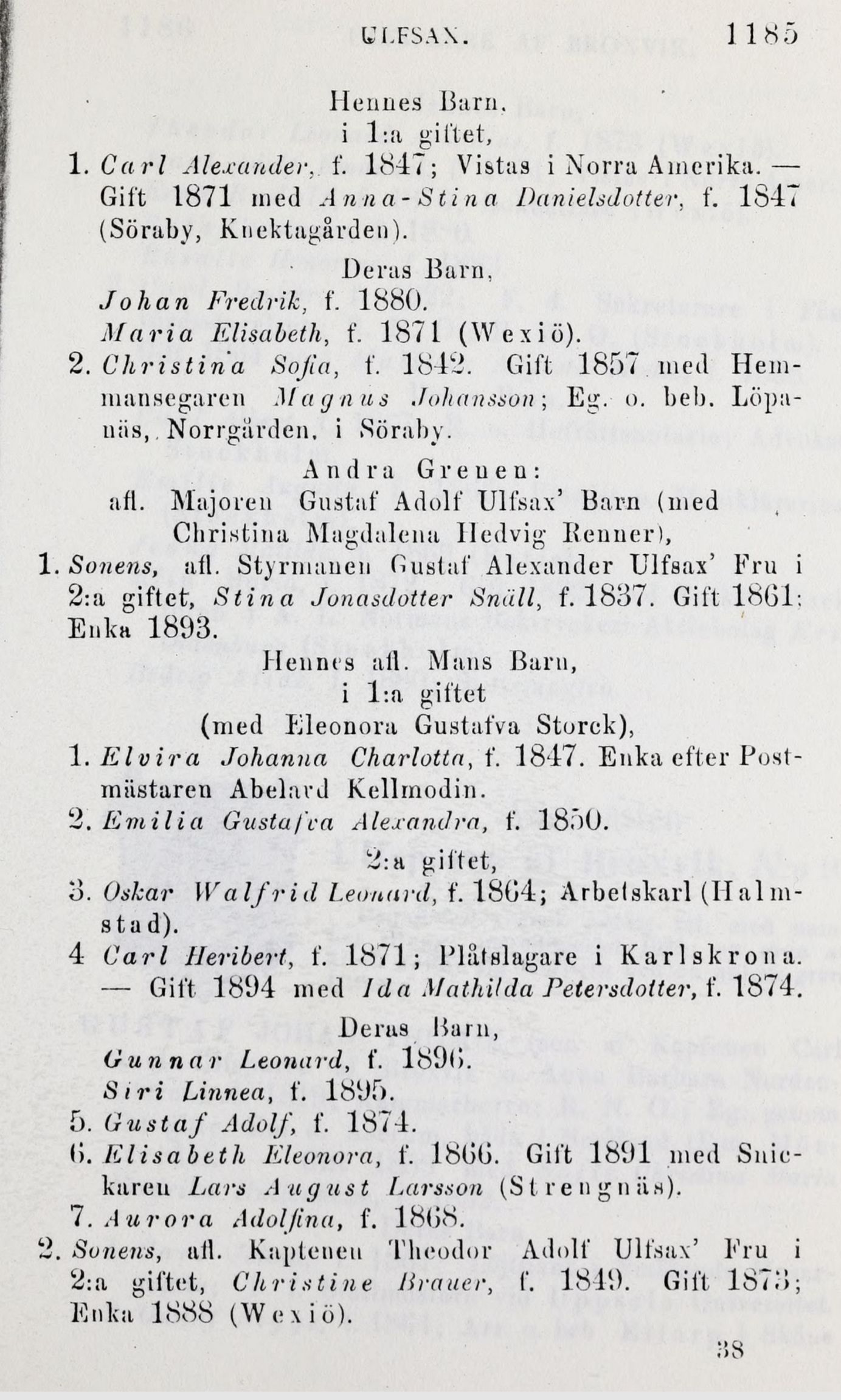 afl. Majoren Gustaf Adolf Ulfsax’ Barn (med