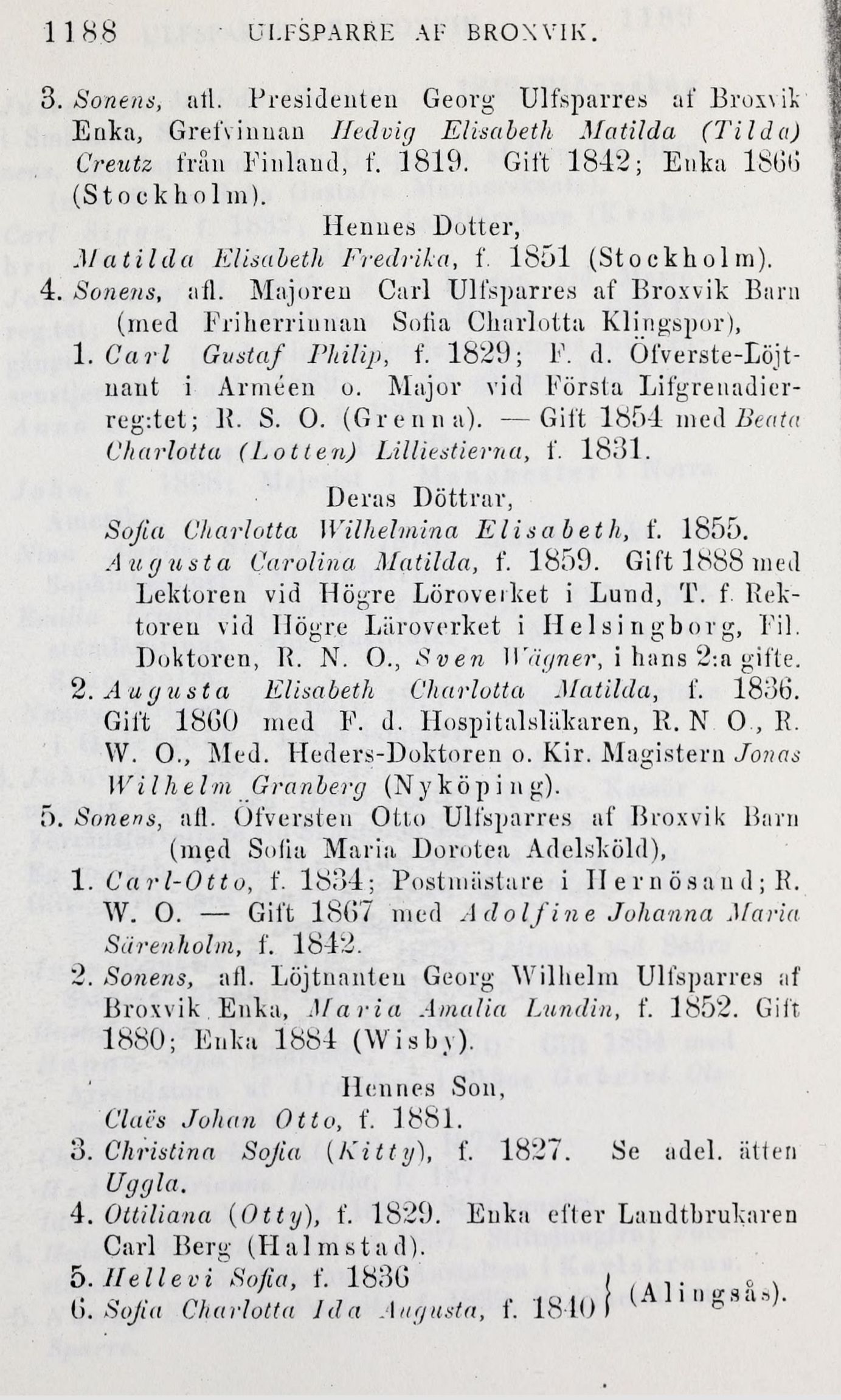 5. Sonens, all. Öfversten Otto Ulfsparres af Broxvik Barn