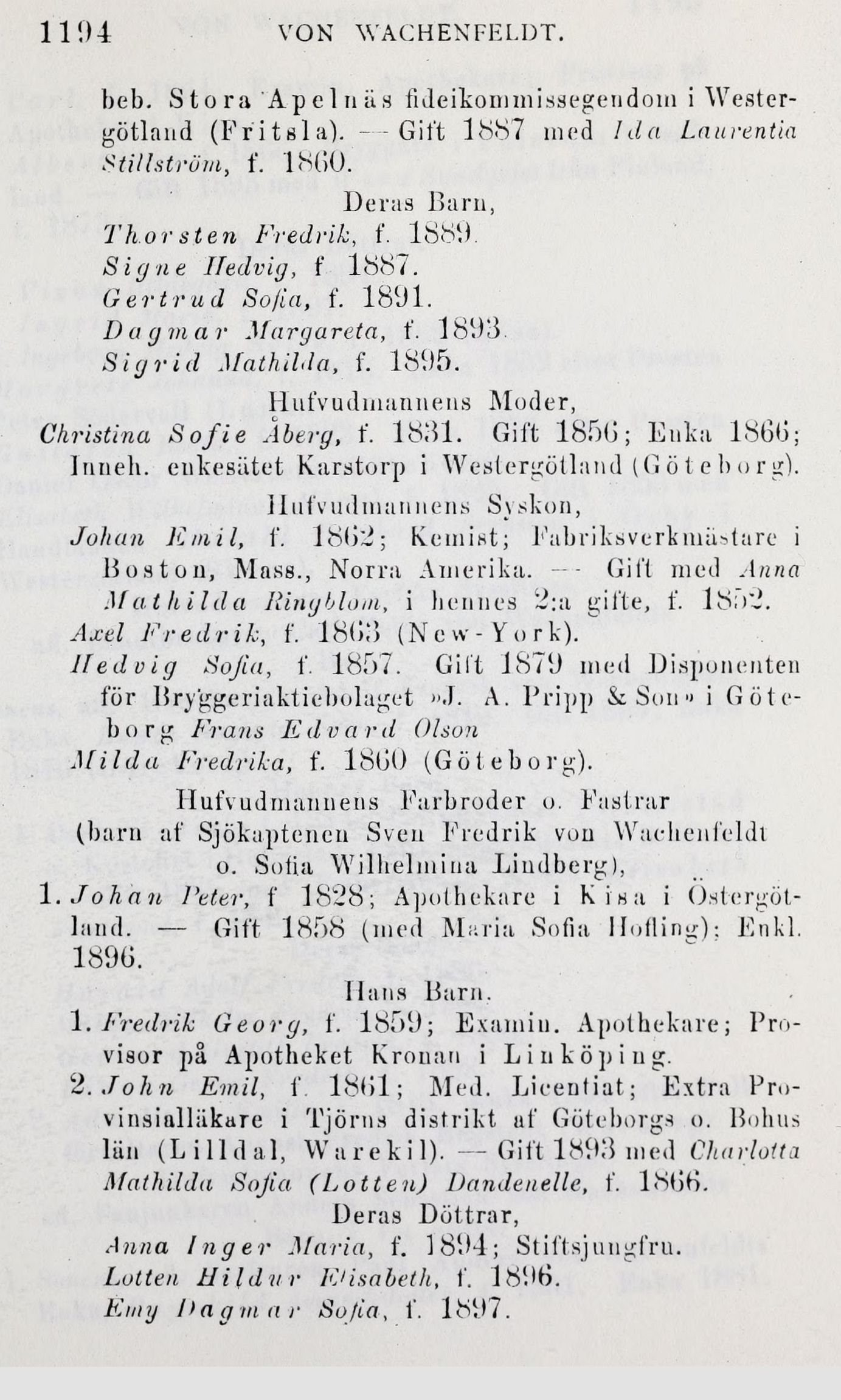 1. Fredrik Georg, f. 1859; Examiu. Apothekare;