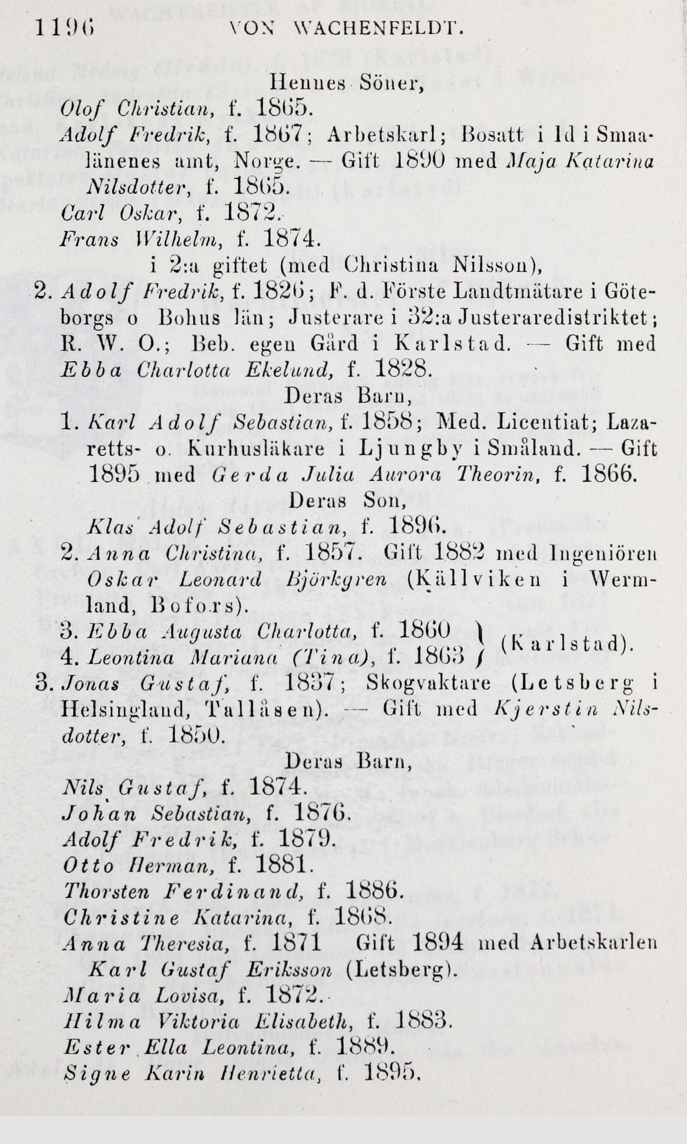 1. Karl Adolf Sebastian, f. 1858; Med. Licentiat;