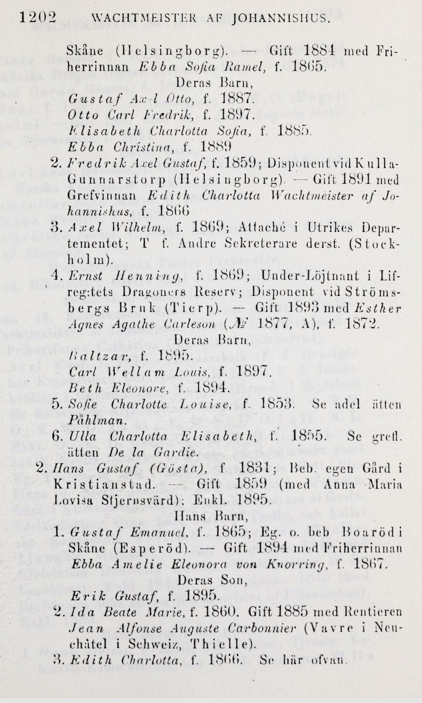 1. Gustaf Emanuel, f. 18(55; Eg. o. beb Boarödi