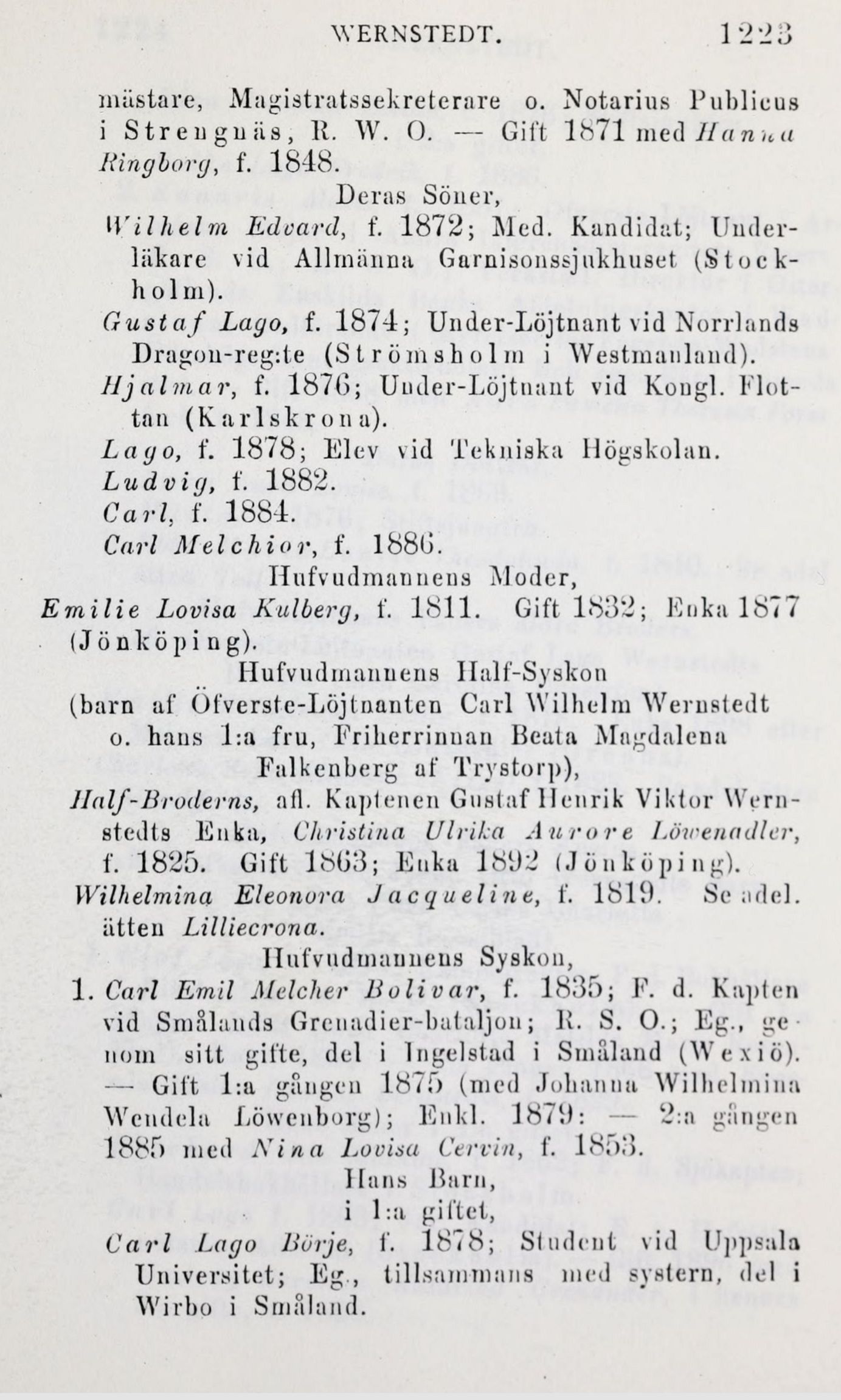 Hj almar, f. 187G; Under-Löjtnant vid Kongl.