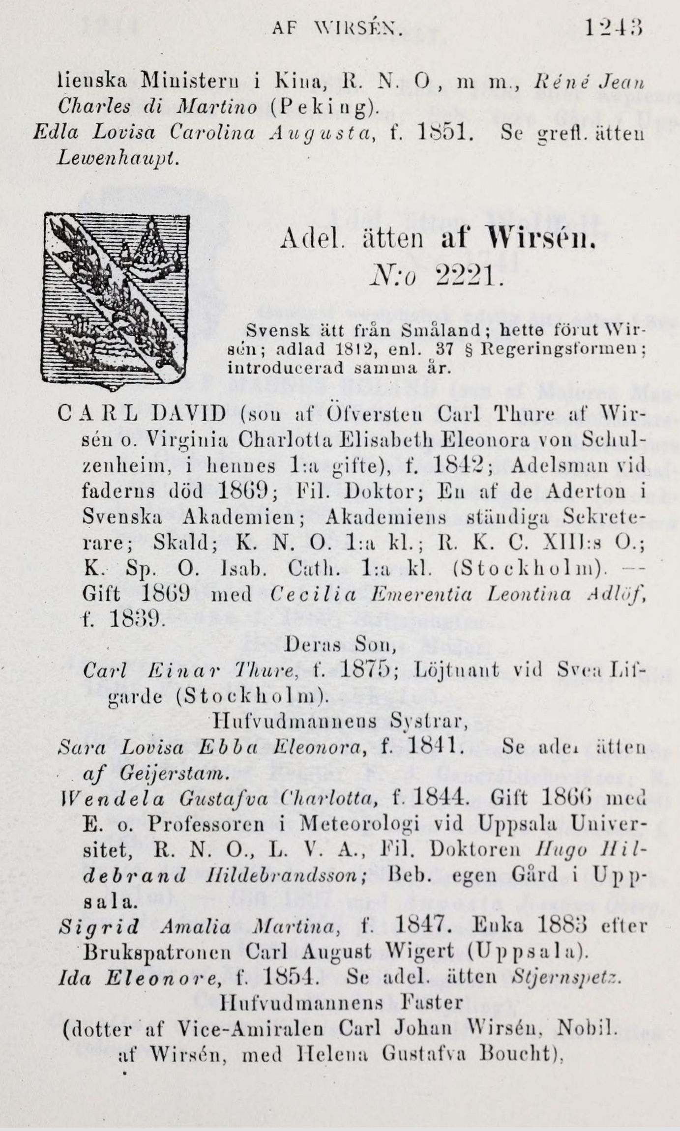 Wirsén; adlad 1812, enl. 37 § Regeringsformen;