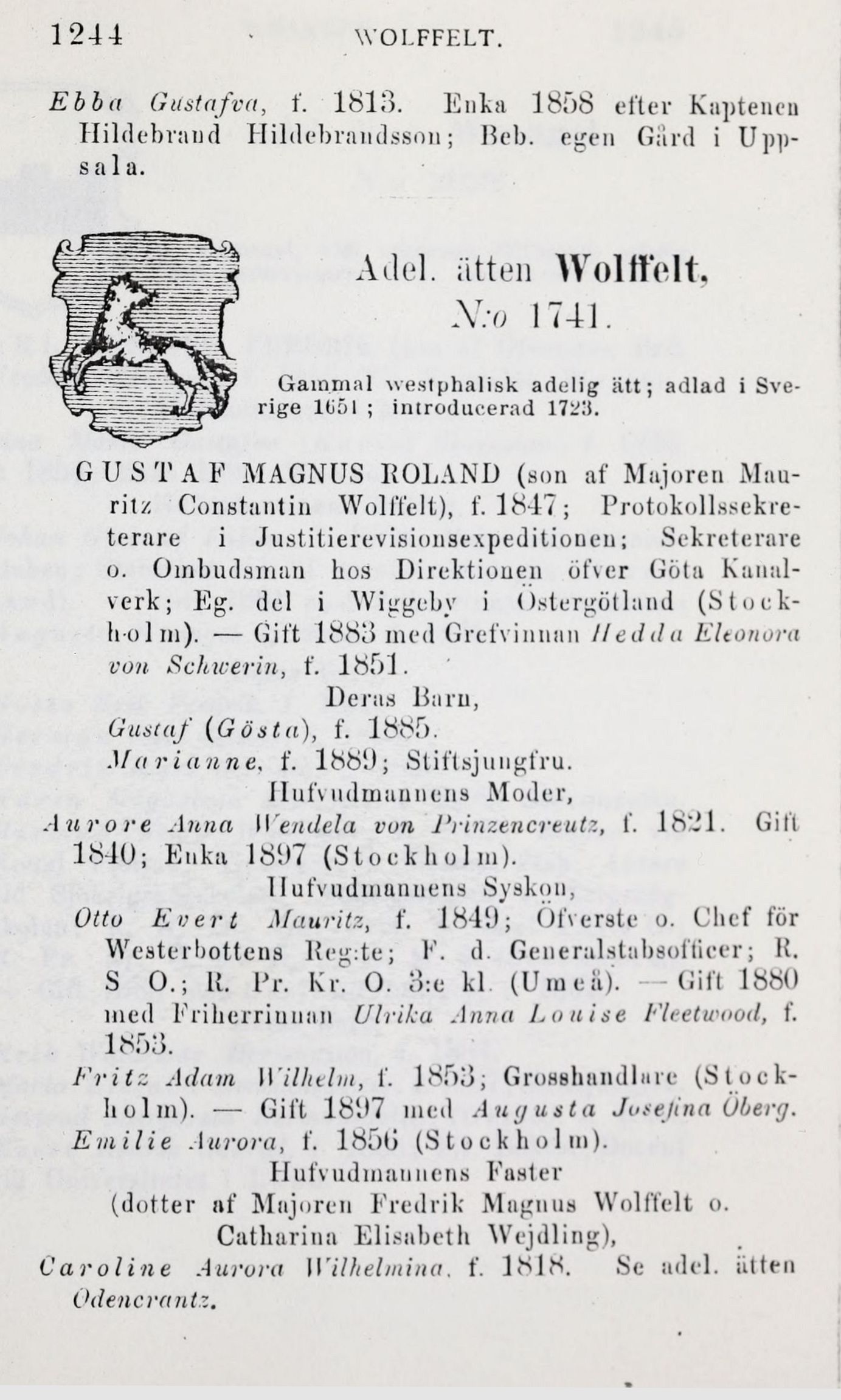 (dotter af Majoren Fredrik Magnus Wolffelt o.