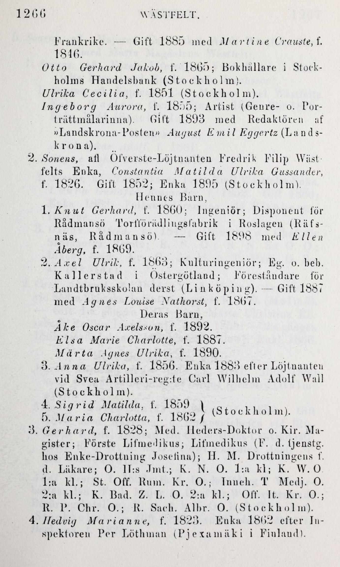 f. 1826. Gift 1852; Enka 1895 (Stockholm).