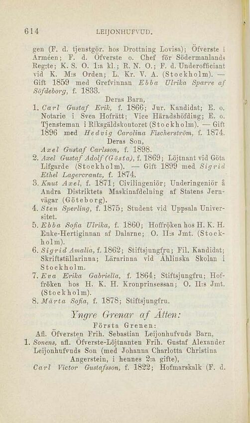 Afl. Öfversten Frih. Sebastian Lejonhufvuds Barn,
