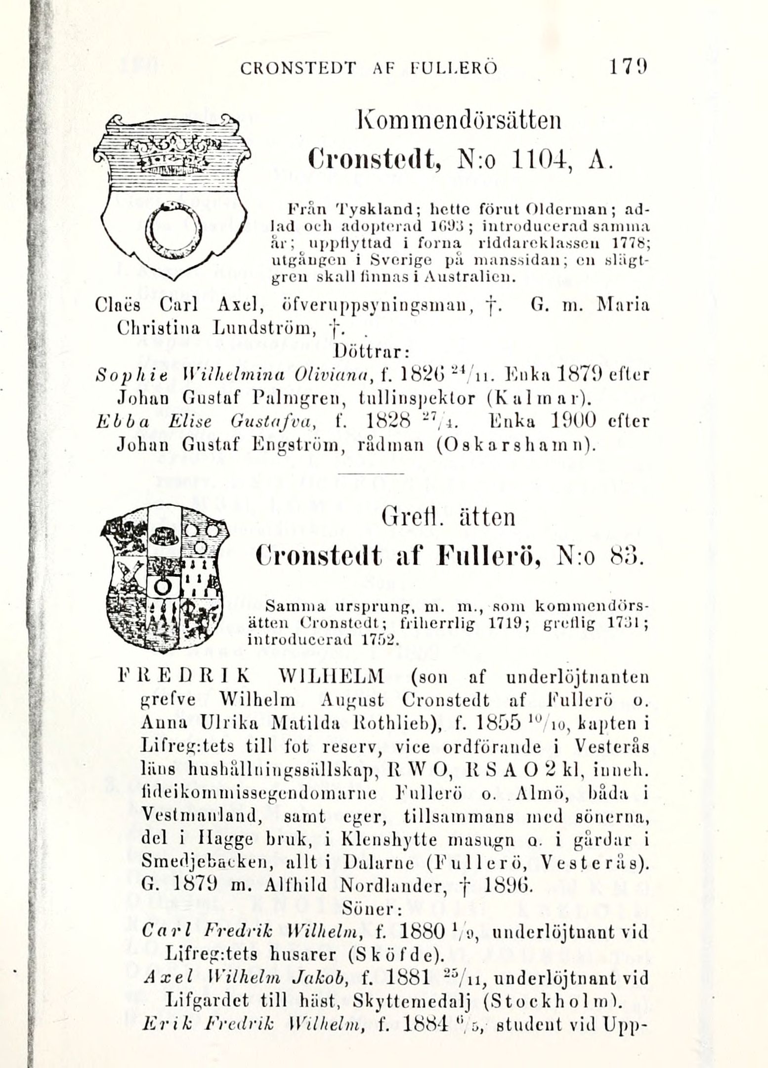 grefve Wilhelm August Cronstedt af Fullerö o.