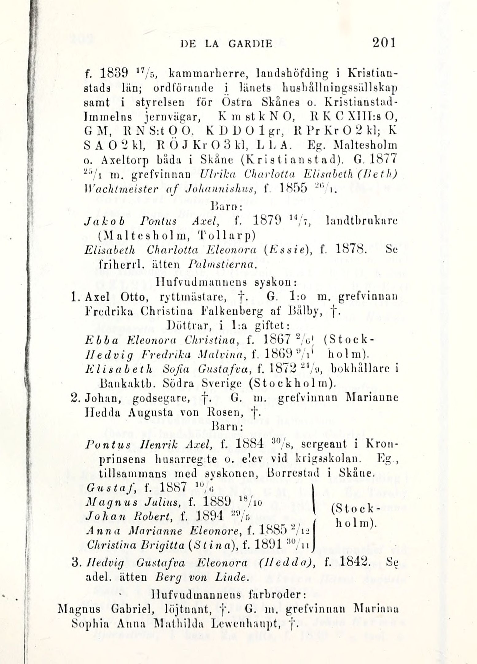 1. Axel Otto, ryttmästare, †. G. 1:0 m. grefvinnan