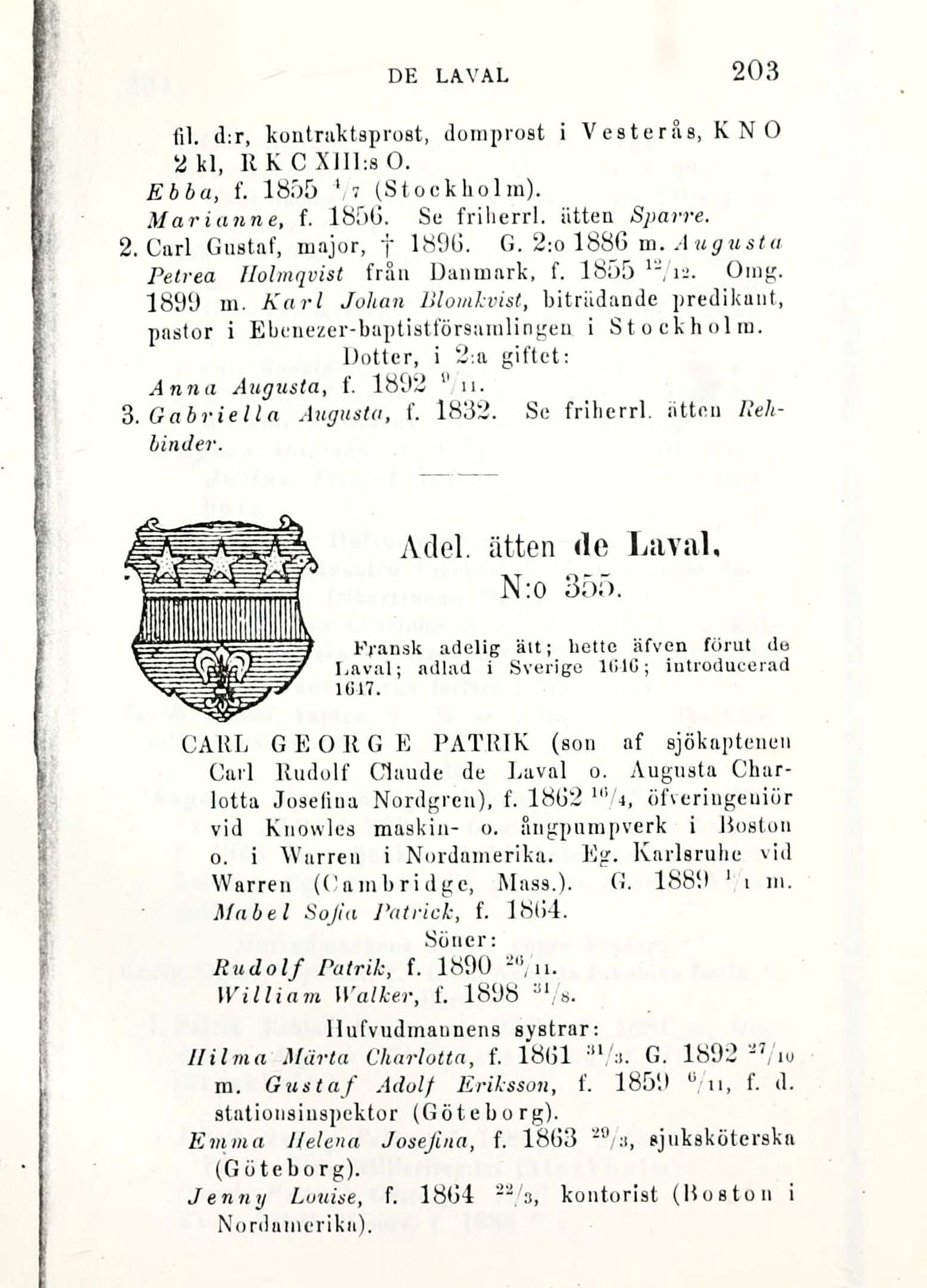 2. Carl Gustaf, major, † 1896. G. 2:o 1886 m. A ugusta