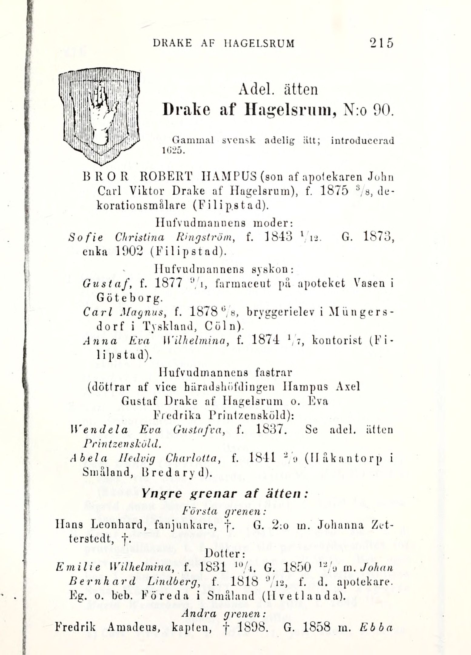 Carl Viktor Drake af Hagelsrum), f. 1875 8, a,