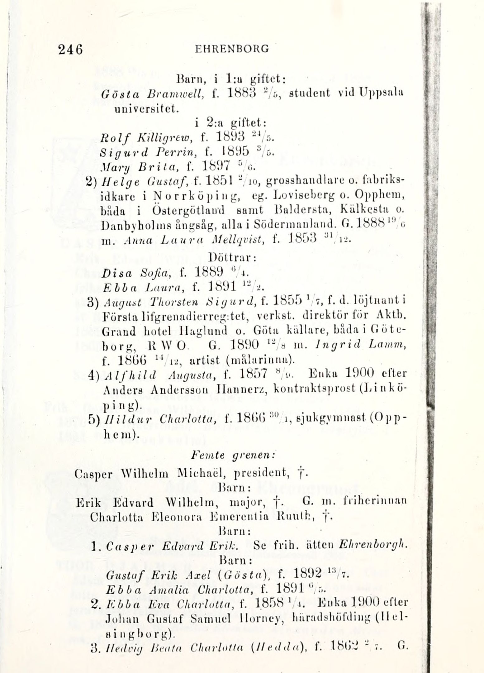1. Casper Edvard Erik. Se frih. ätten Ehrenborgh.